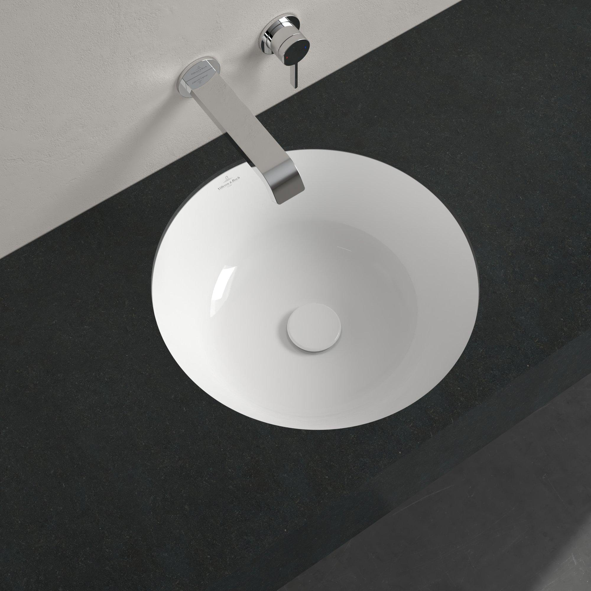 Vous recherchez un petit lavabo rond qui est encastré de façon affleurante dans le plan et qui s’intègre parfaitement dans une salle de bains calme et intemporelle ? Cette solution sous-plan est idéale pour ceux qui aiment un plan de lavabo dégagé et une apparence minimaliste, sans faire de compromis sur le confort ou la facilité d’utilisation. Grâce à la pose sous le plan, un ensemble sans joint apparent est créé : vous voyez surtout votre beau plan de lavabo, tandis que la cuve profonde et fonctionnelle vous permet de vous laver les mains agréablement chaque jour, de nettoyer votre visage ou de remplir un verre sans éclaboussures gênantes. Ce lavabo trouve sa place dans les salles de bains modernes et design, mais grâce à sa forme douce et ronde, il s’intègre tout aussi bien dans un style plus classique ou scandinave. Surtout dans les petites salles de bains, les toilettes ou dans une installation double luxueuse sur un meuble large, c’est un choix particulièrement astucieux.