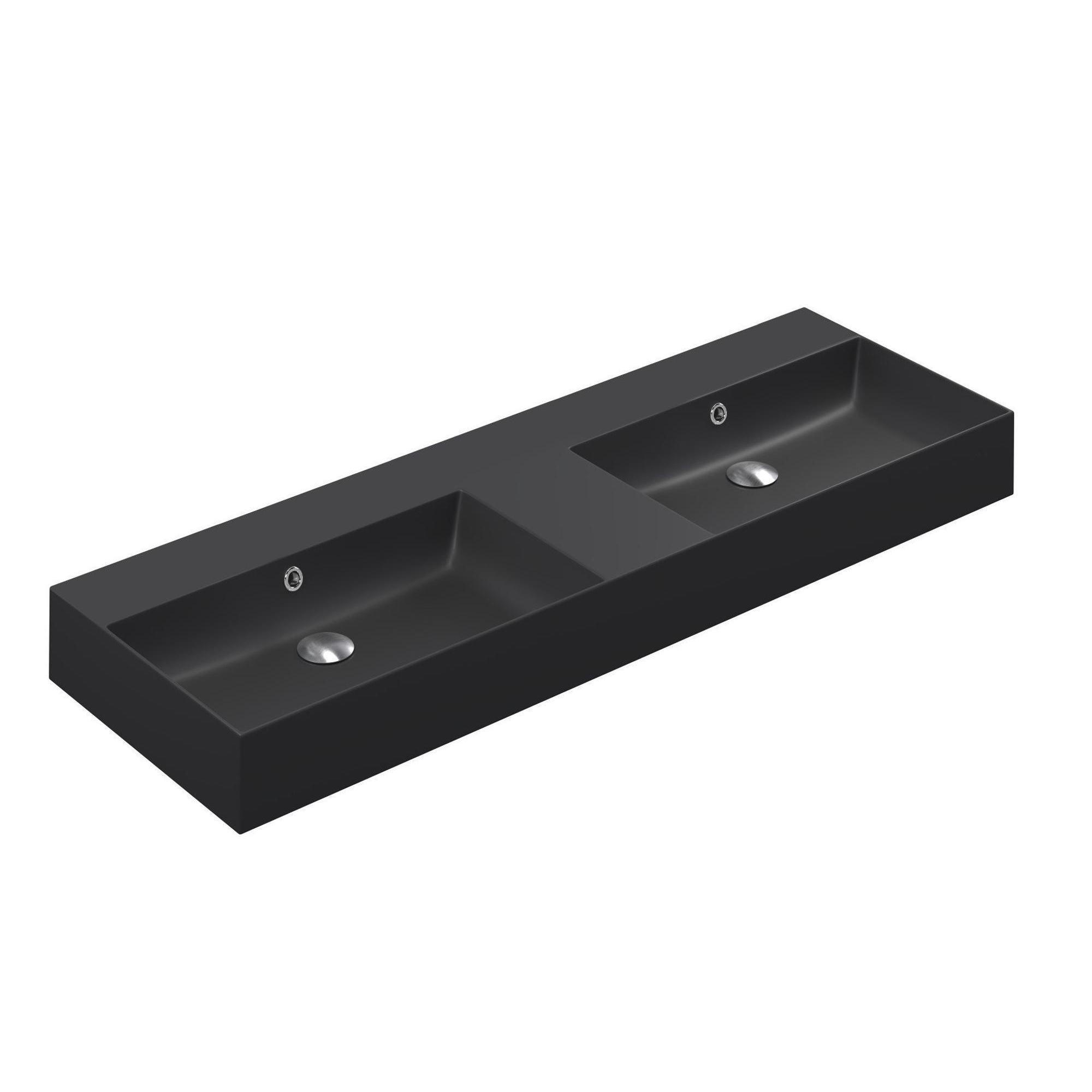 Avec deux vasques séparées, ce lavabo offre beaucoup d’espace pour se laver confortablement, même à plusieurs en même temps. Cela le rend idéal pour les matins chargés ou lorsque vous partagez la salle de bains avec votre partenaire. L’absence de trous de robinet vous donne la liberté de choisir un robinet qui correspond parfaitement à vos souhaits, qu’il s’agisse d’un robinet haut moderne ou d’un robinet mural minimaliste. Vous adaptez ainsi la fonctionnalité entièrement à votre routine quotidienne.