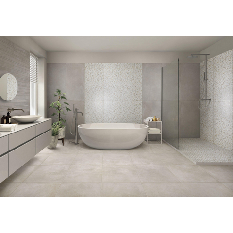 Le carreau JOS. Loft rayonne d'une splendeur incomparable avec son design lumineux et intemporel. La finition en grès cérame Gesso procure une brillance subtile qui illumine la pièce et crée une sensation de luxe. Les bords rectifiés assurent une finition sans joints apparents et un aspect moderne qui transforme chaque espace en une véritable oasis de beauté.