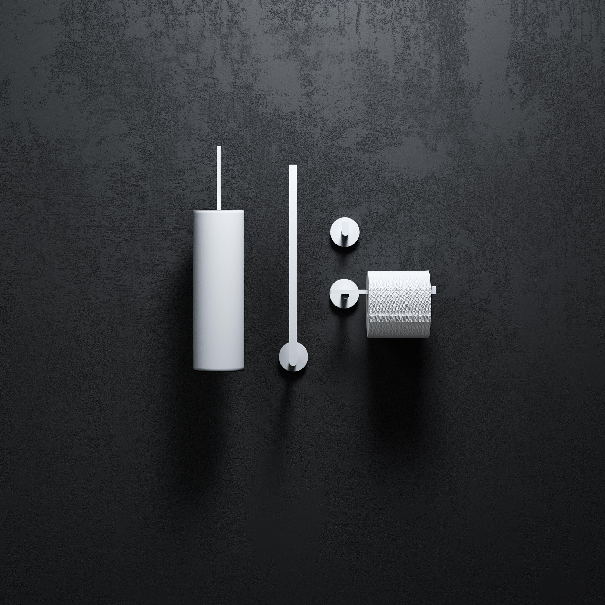 Cet ensemble contient tout ce dont vous avez besoin autour des toilettes : un porte-rouleau de papier toilette, un porte-rouleau de réserve, un ensemble balai de toilettes et des crochets pour, par exemple, une serviette ou des vêtements. Comme tous les éléments proviennent de la même ligne design, l'ensemble offre une image épurée et calme, exactement ce que vous recherchez dans des toilettes modernes ou une petite salle de bains. Vous évitez un mélange de styles et de couleurs différents, qui peut rapidement paraître désordonné. Surtout dans les petits espaces, un ensemble uniforme de ce type a un effet apaisant et agrandissant visuellement. De plus, c'est pratique : vous disposez immédiatement de tous les accessoires de base, coordonnés et prêts à être montés au mur.