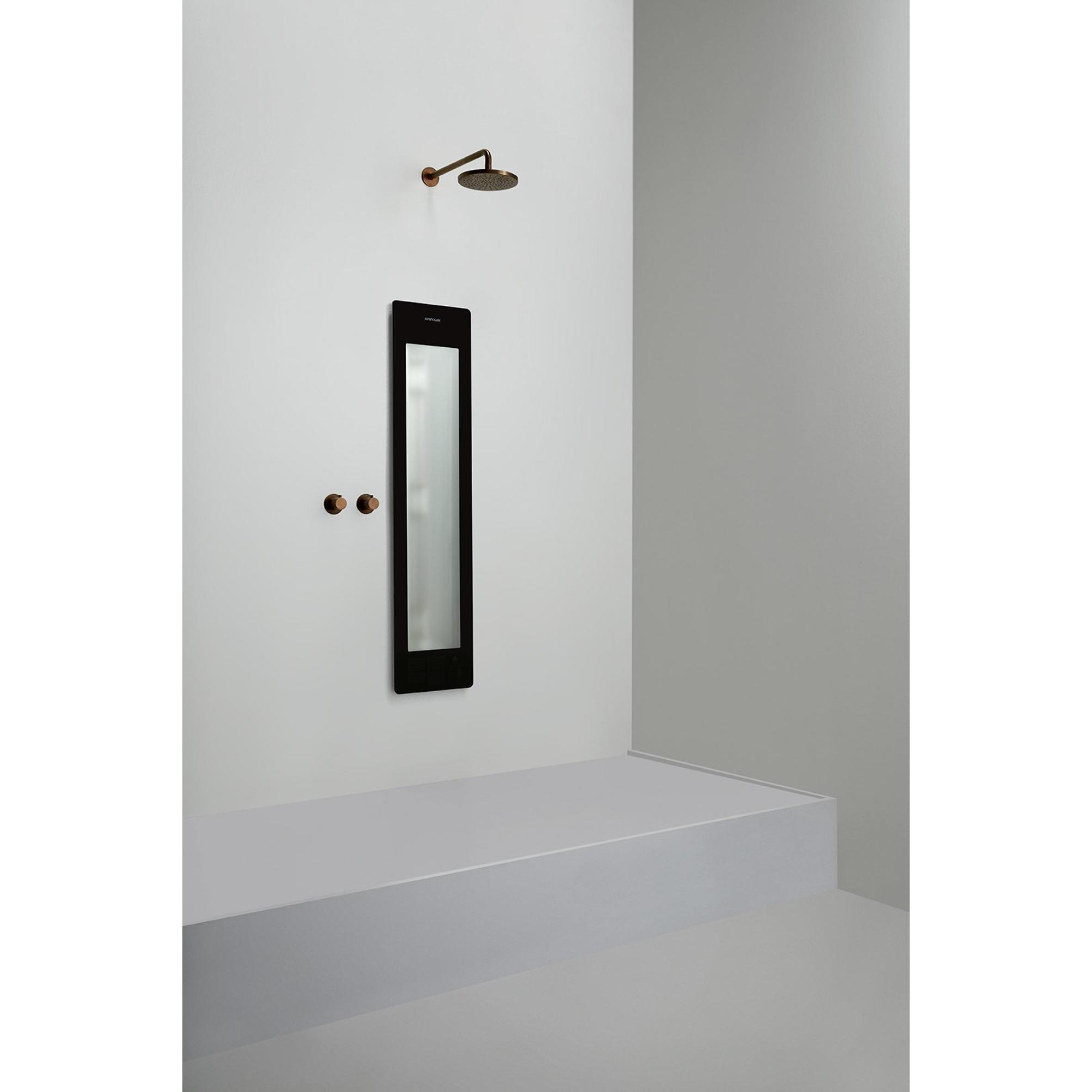 Le design de ce panneau encastré est épuré et moderne, réalisé dans une élégante couleur noire qui s’intègre facilement à chaque style de salle de bains. Grâce à l’intégration subtile dans le mur, le panneau ne saute pas aux yeux, mais apporte justement une apparence apaisante et luxueuse. Cela en fait un ajout élégant qui rehausse votre salle de bains sans prendre de place ni être visuellement envahissant. Vous combinez ainsi fonctionnalité et esthétique raffinée qui complètent parfaitement votre salle de bains.