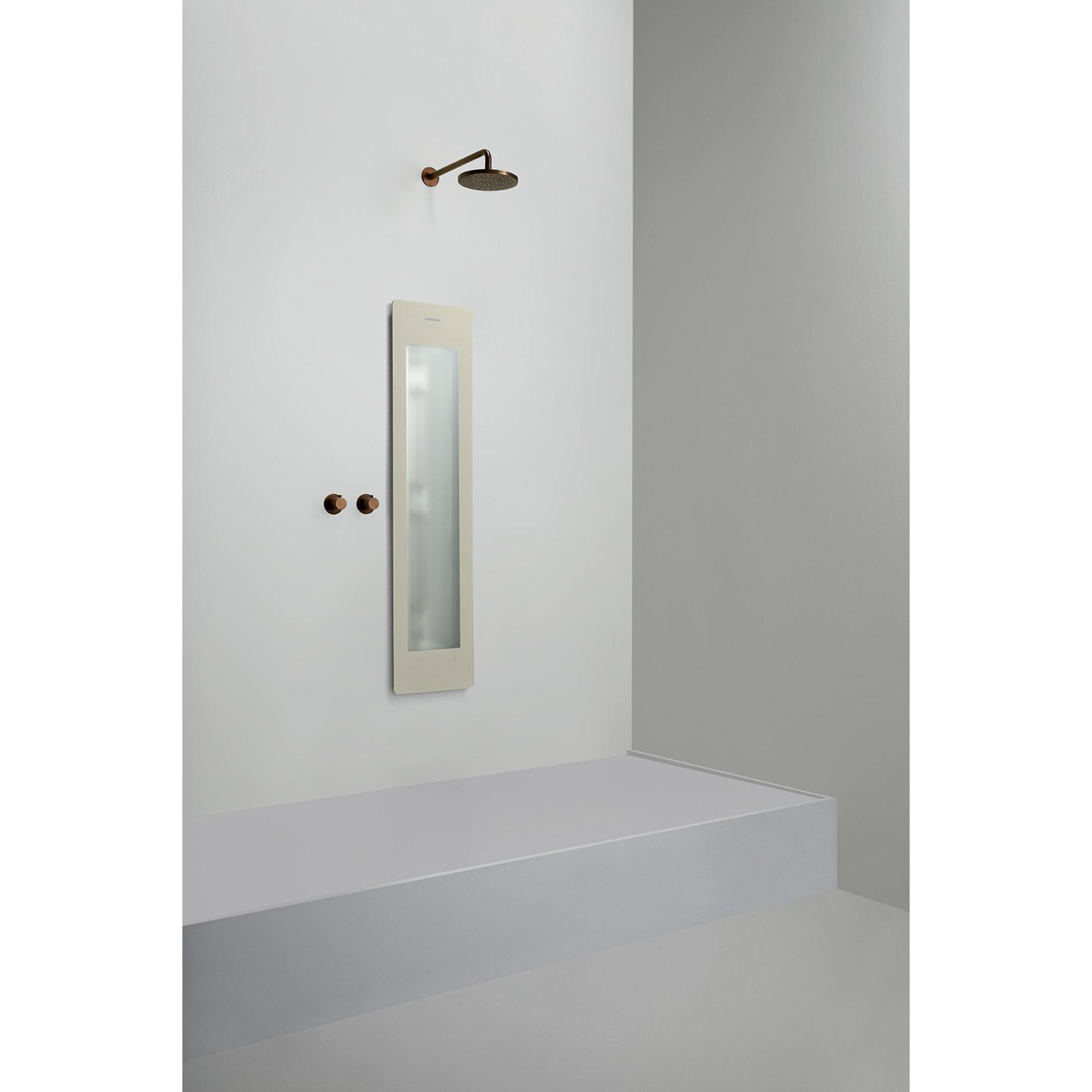 La couleur sand white et le design minimaliste s'intègrent parfaitement dans des salles de bains intemporelles, scandinaves ou modernes. Le panneau présente un profil mince de seulement 10 cm de profondeur et est encastré de manière parfaitement affleurante dans le mur ou le plafond, ce qui prend à peine de place et crée une apparence apaisante. La forme allongée s'accorde élégamment avec une douche à l'italienne ou le long d'une baignoire, sans surcharge visuelle. Vous ajoutez ainsi un élément de bien-être luxueux qui ne domine pas votre intérieur, mais le met au contraire en valeur. La finition haut de gamme garantit que le panneau conserve au fil des années un aspect soigné et élégant, permettant à votre salle de bains de garder son allure raffinée.