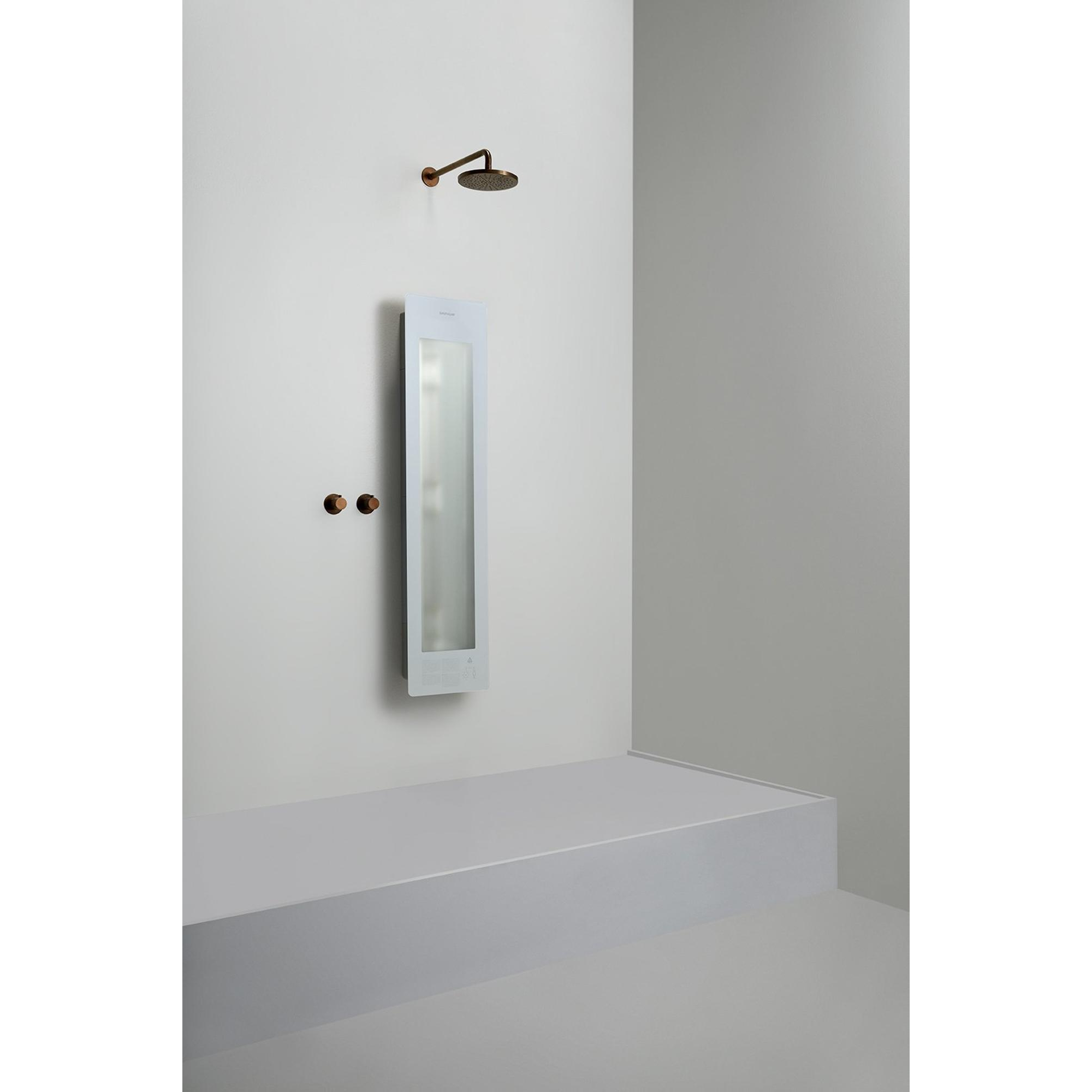 Le rayonnement infrarouge se compose de deux longueurs d’onde qui travaillent ensemble pour réchauffer votre corps en profondeur et le détendre. La courte onde (IRA) pénètre en profondeur et stimule la circulation sanguine, tandis que l’onde moyenne (IRB) procure une agréable sensation de chaleur sur la peau. Cela aide non seulement à réduire les tensions musculaires et les douleurs articulaires, mais offre également une sensation de bien-être proche de celle d’un sauna pendant la douche. La commande via écran tactile est intuitive et conviviale, ce qui vous permet de régler rapidement et simplement la chaleur souhaitée. Grâce au montage en saillie, l’installation est flexible et le panneau s’intègre dans presque toutes les configurations de salle de bains.