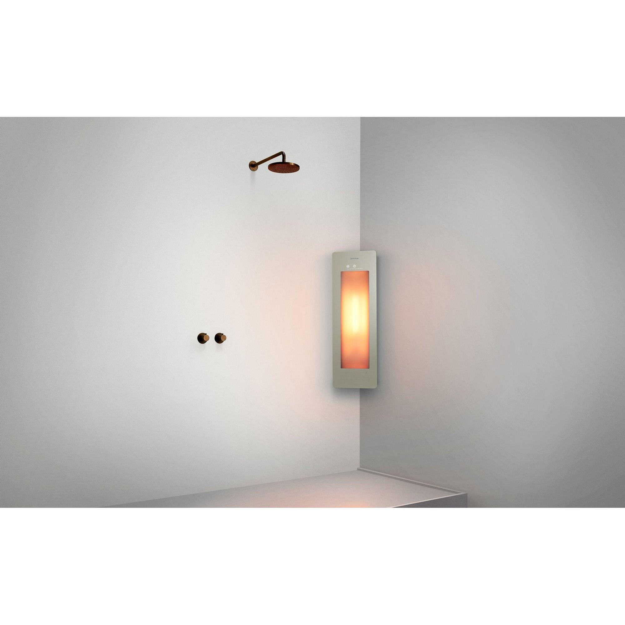 Sunshower Round Small Plus lumière infrarouge et UV en saillie incl. Kit d'installation d'angle 95x33x25cm Sand White