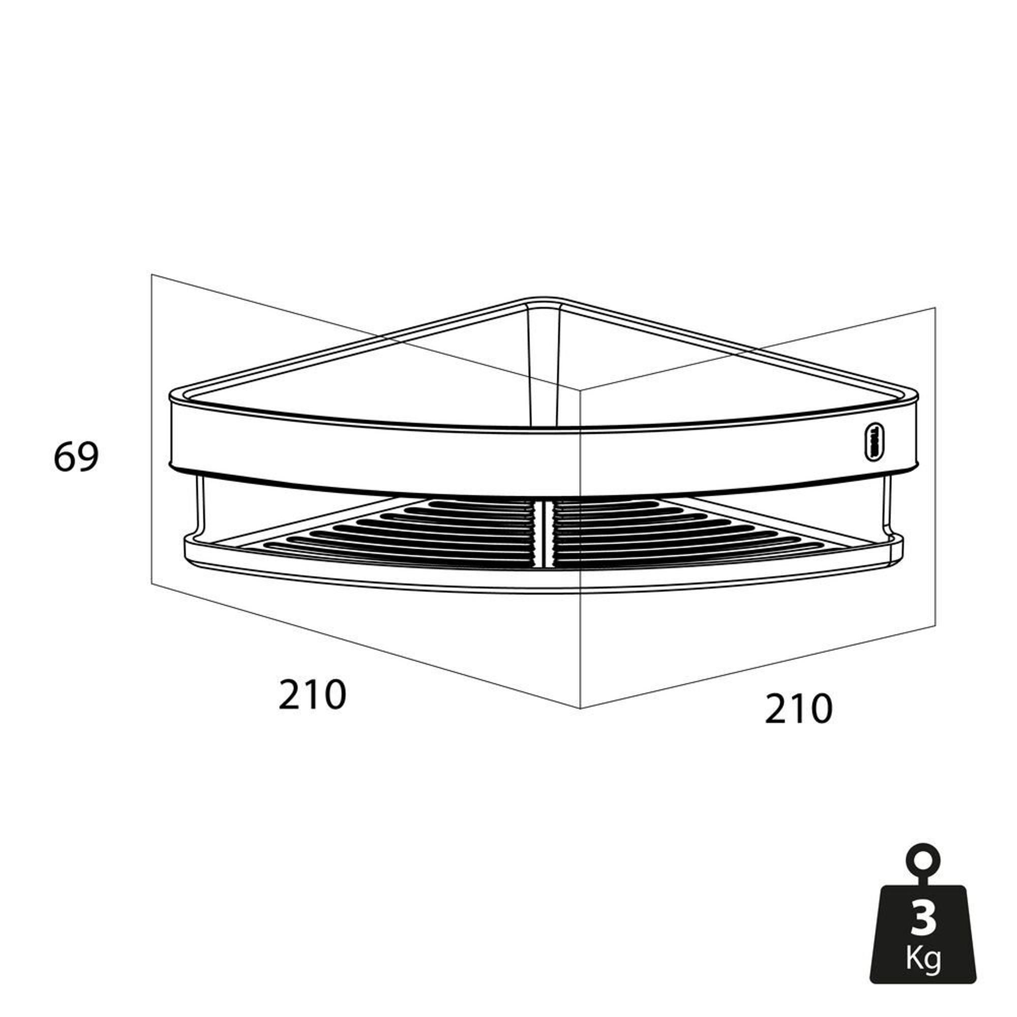 La conception triangulaire intelligente utilise de manière optimale l'angle de votre douche. Vous créez ainsi un espace de rangement supplémentaire sans perdre d'espace pour vous déplacer, idéal si votre douche n'est pas très grande ou si vous avez plusieurs utilisateurs à la maison avec chacun ses propres flacons. La dimension de 21x21x7 cm offre suffisamment de place pour vos produits de soins quotidiens, tandis que les bords surélevés empêchent tout de glisser. Grâce à la structure ouverte, l'eau peut s'évacuer rapidement, de sorte que les flacons ne restent pas dans des flaques et que la surface sèche mieux. Cela donne non seulement une impression d'ordre, mais aide aussi à garder le coin douche frais plus longtemps.