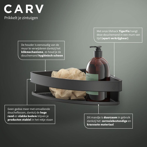 Tiger Carv Panier de douche - 21x21x7cm - modèle d'angle - noir