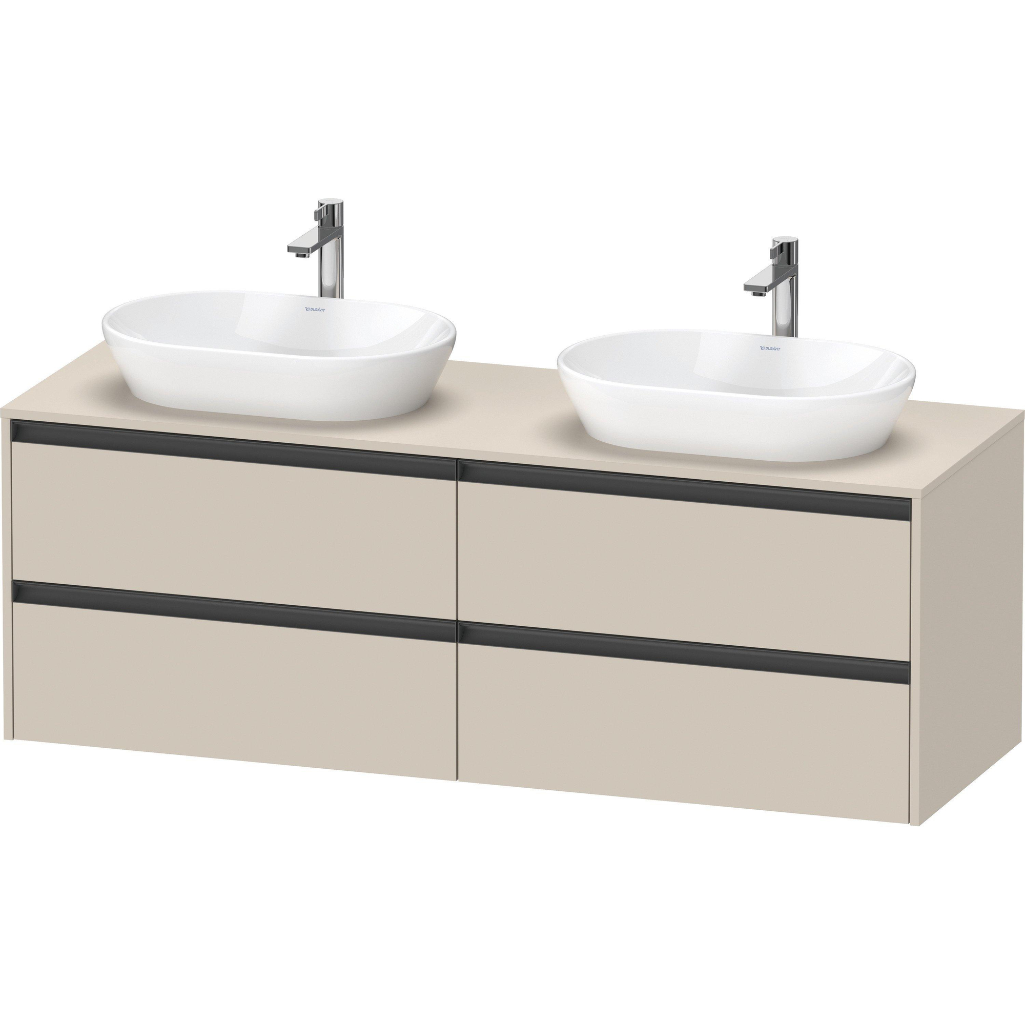 Duravit Ketho 2 meuble bas pour lavabo incl. plan de console avec 4 tiroirs pour doubles vasques 160x55x56.8cm avec poignées anthracite taupe super mat