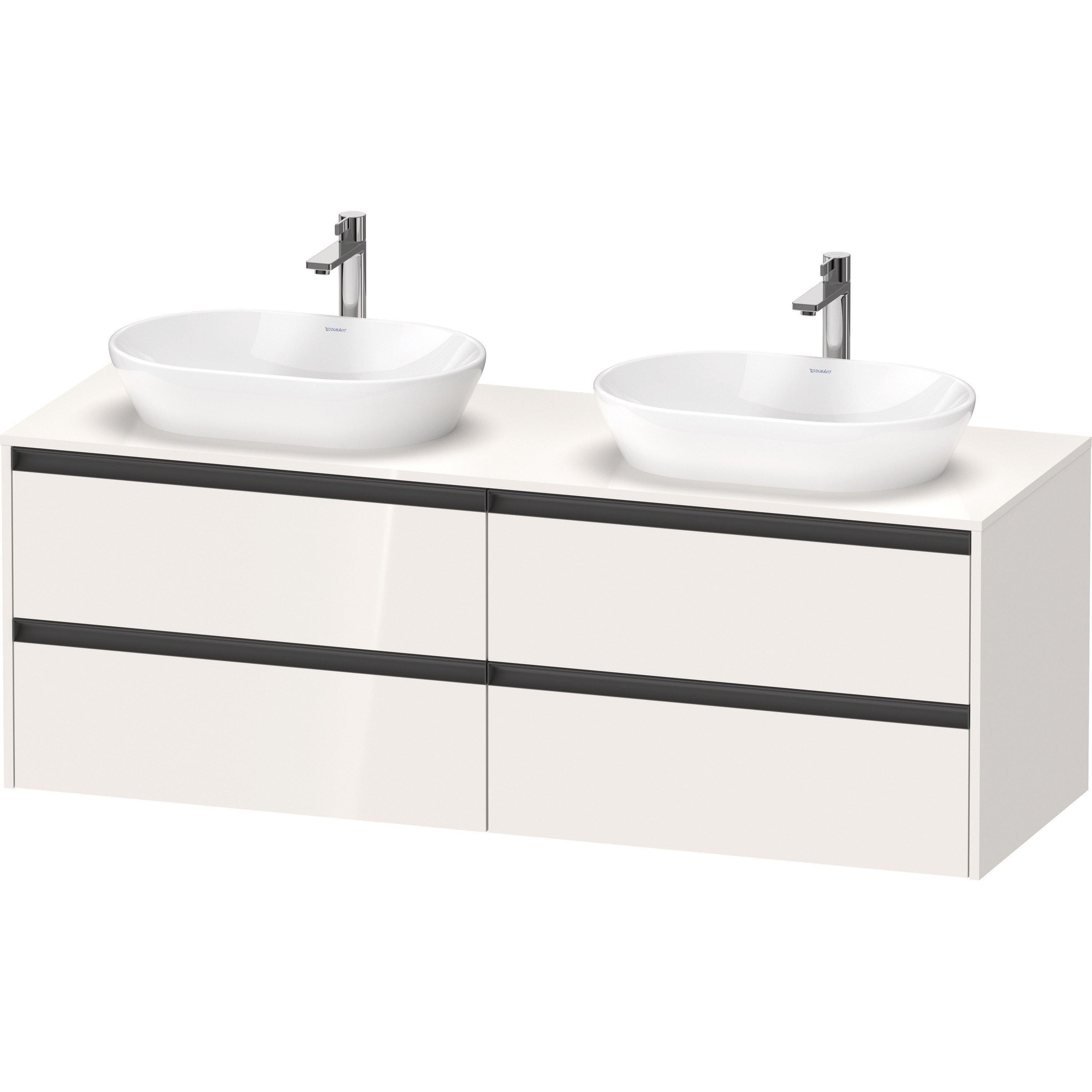 Duravit Ketho 2 meuble bas pour lavabo inclus plateau console avec 4 tiroirs pour vasques à poser doubles 160x55x56.8cm avec poignées anthracite blanc brillant