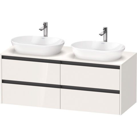 Duravit Ketho 2 meuble sous-lavabo avec panneau de console inclus avec 4 tiroirs pour deux vasques 140x55x56.8cm avec poignées anthracite blanc brillant