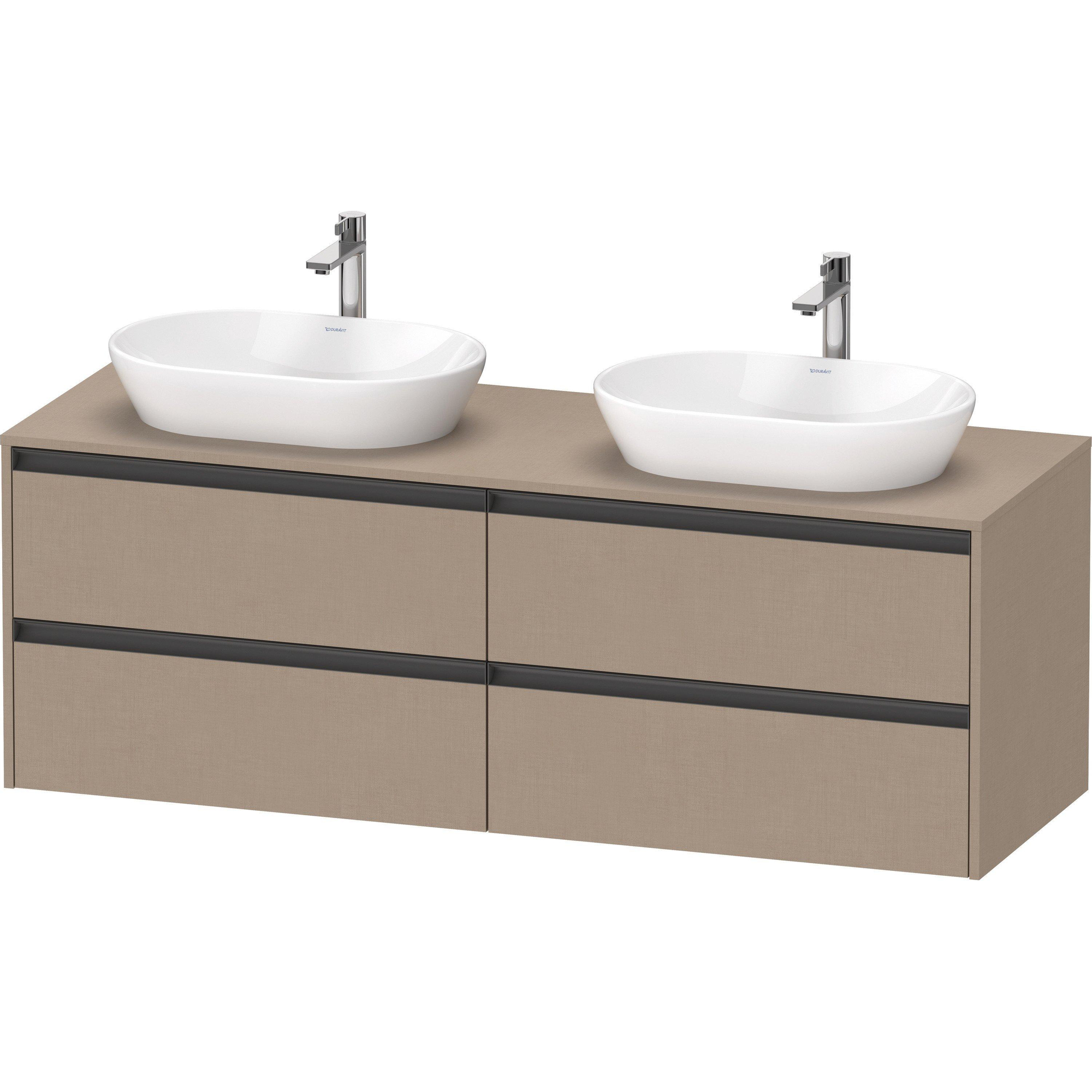 Duravit Ketho 2 meuble bas pour lavabo incl. plan de console avec 4 tiroirs pour vasques doubles 160x55x56.8cm avec poignées anthracite Linnen mat