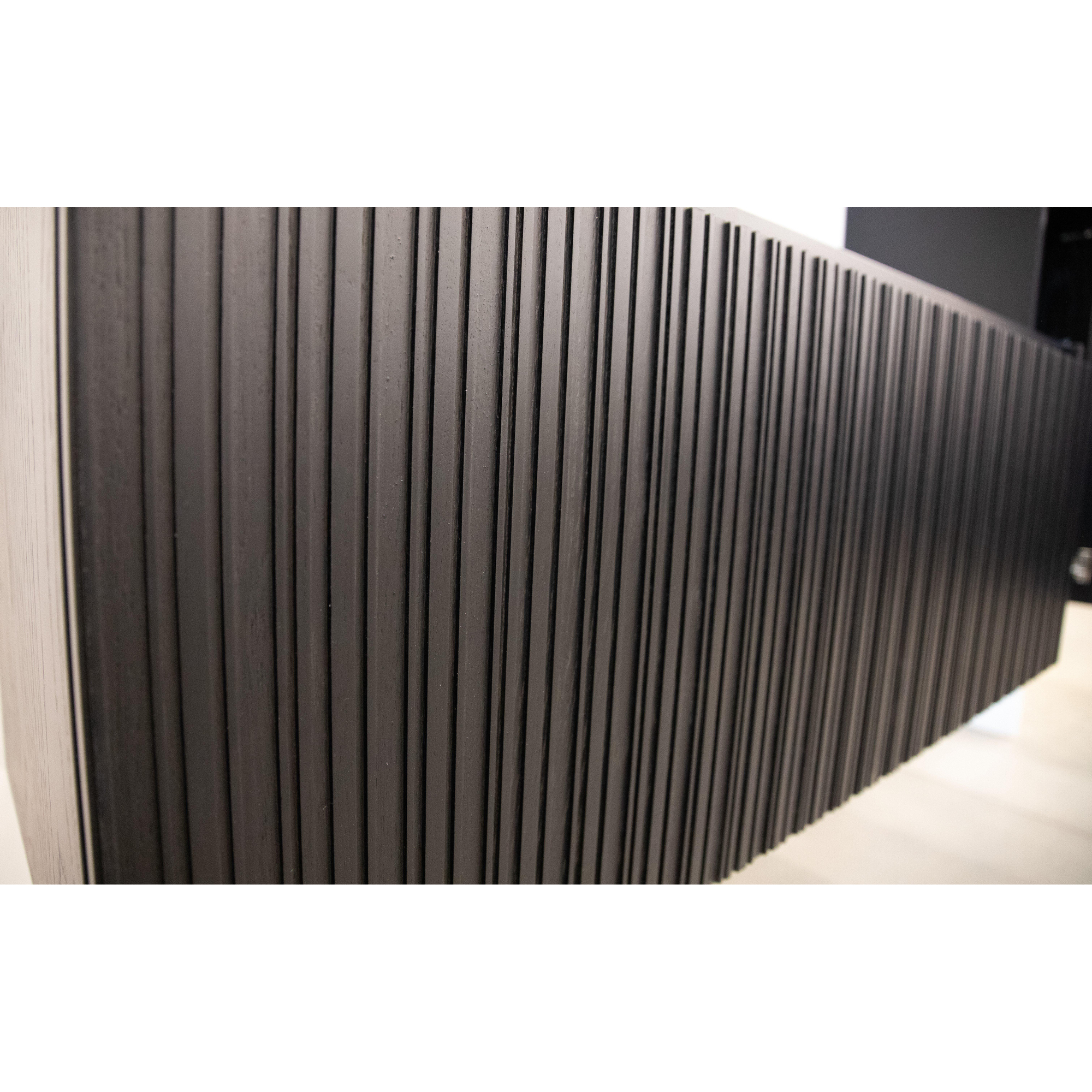 Ce meuble sous lavabo attire immédiatement l'attention par son apparence intemporelle et raffinée. Le design sans poignée donne au meuble un look minimaliste et moderne, tandis que la finition brun noir mat ajoute chaleur et caractère. Cela fait de ce meuble un véritable point focal dans votre salle de bains, sans dominer. La structure nervurée verticale sur la façade apporte une texture subtile et de la profondeur, donnant à l'ensemble une sensation de luxe supplémentaire. Ainsi, vous créez une salle de bains qui est non seulement pratique, mais aussi accueillante et élégante.