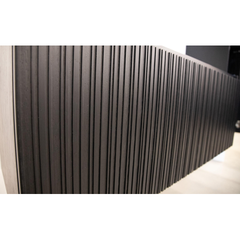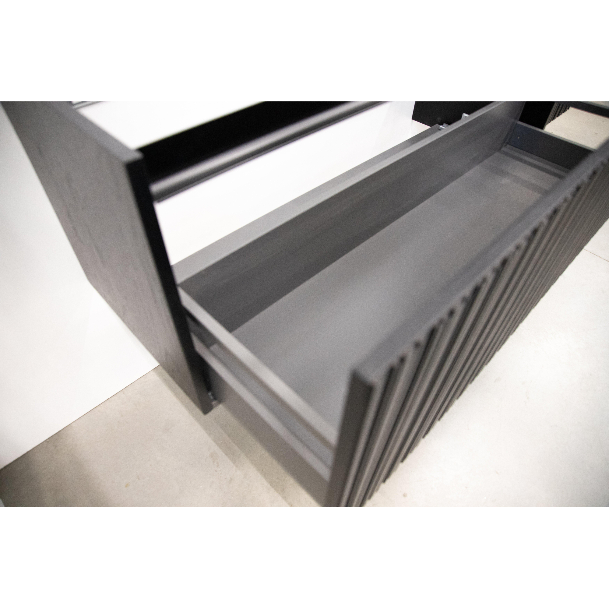 Ce meuble sous lavabo se distingue immédiatement par son apparence intemporelle et élégante. La couleur mate brun noir apporte une atmosphère chaleureuse et naturelle qui semble à la fois moderne et classique. Le devant sans poignée offre un look minimaliste et épuré, ce qui permet au meuble de s’intégrer parfaitement dans une décoration de salle de bains contemporaine. Avec sa forme rectangulaire et son devant subtilement rainuré, vous ajoutez une texture raffinée qui donne un caractère supplémentaire à l’ensemble. Ainsi, vous profitez non seulement d’un meuble pratique, mais aussi d’un ajout élégant qui complète votre salle de bains.