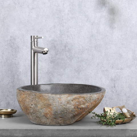 Differnz Lombok vasque à poser 36cm ronde pierre de rivière grise
