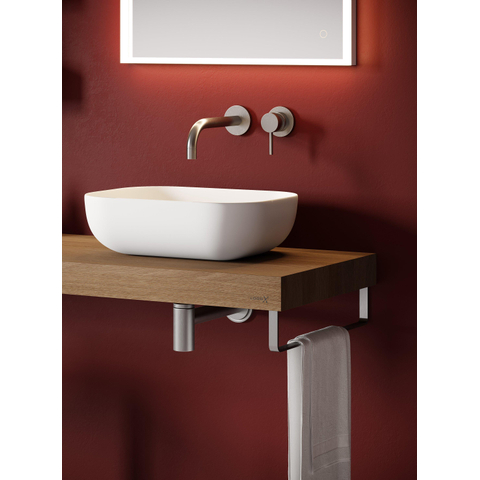 Le format compact rend cette vasque à poser particulièrement adaptée aux petits meubles de salle de bains, meubles de toilette ou pour deux vasques côte à côte sur un seul plan. Avec 0 trou de robinetterie, vous avez la liberté de combiner un mitigeur mural ou un mitigeur sur pied installé sur le plan, exactement à l’endroit qui vous convient le mieux. Vous adaptez ainsi parfaitement l’agencement de votre meuble à votre utilisation et à l’espace disponible. Comme la vasque est autoportante, vous pouvez en outre jouer avec sa position sur le plan : centrée pour un look symétrique ou légèrement décalée pour un ensemble plus ludique.