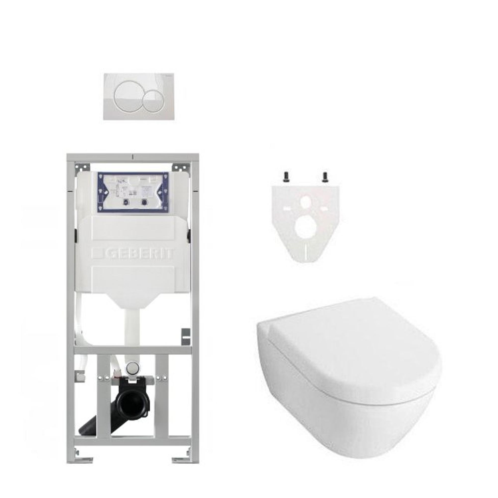 Villeroy & Boch Subway 2.0 DirectFlush Pack WC avec abattant de luxe softclose Saniclass, bâti-support Geberit et plaque de commande blanc