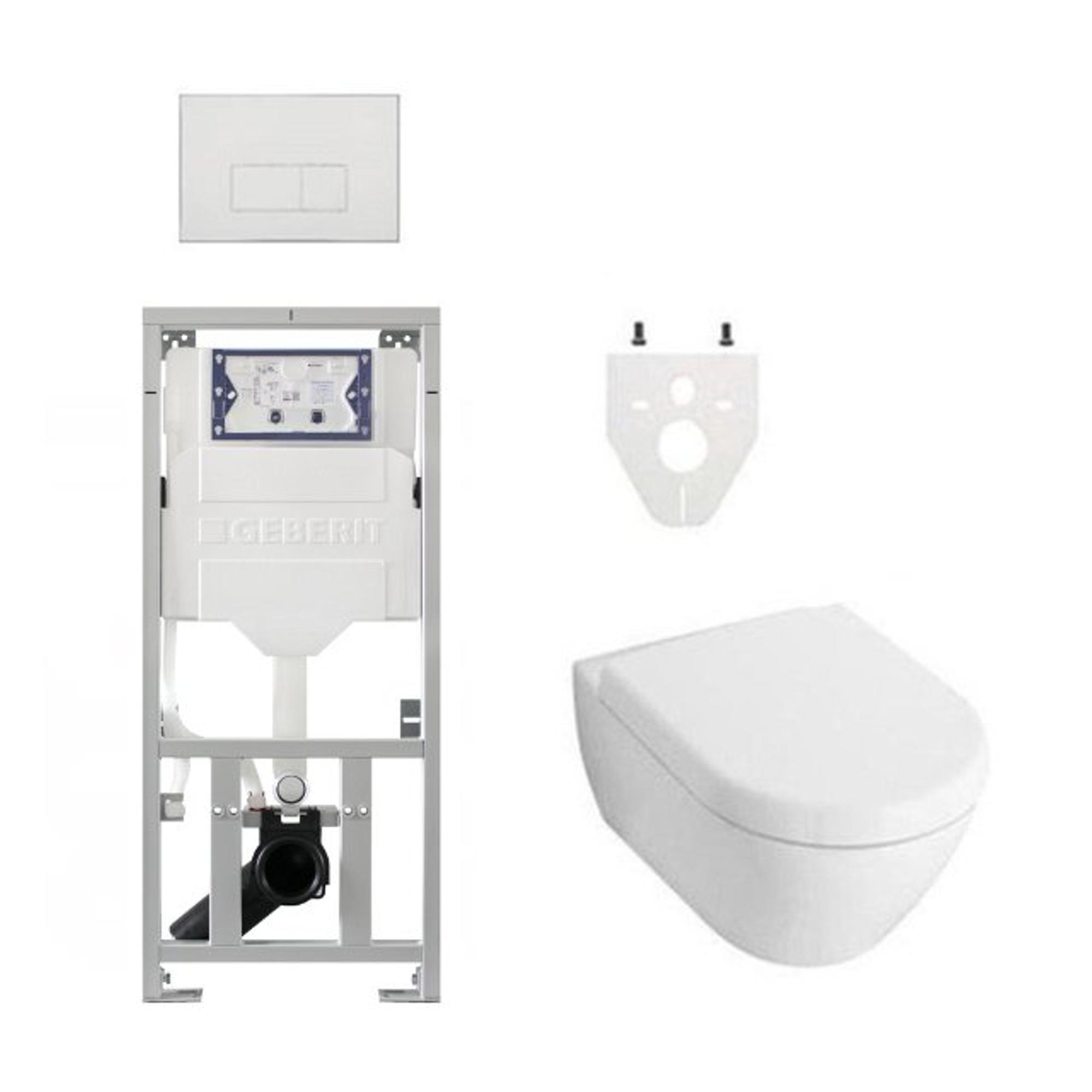 Villeroy & Boch Subway 2.0 DirectFlush Pack WC avec abattant softclose Saniclass, bâti-support Geberit et plaque de commande QeramiQ avec boutons rectangulaires blanc