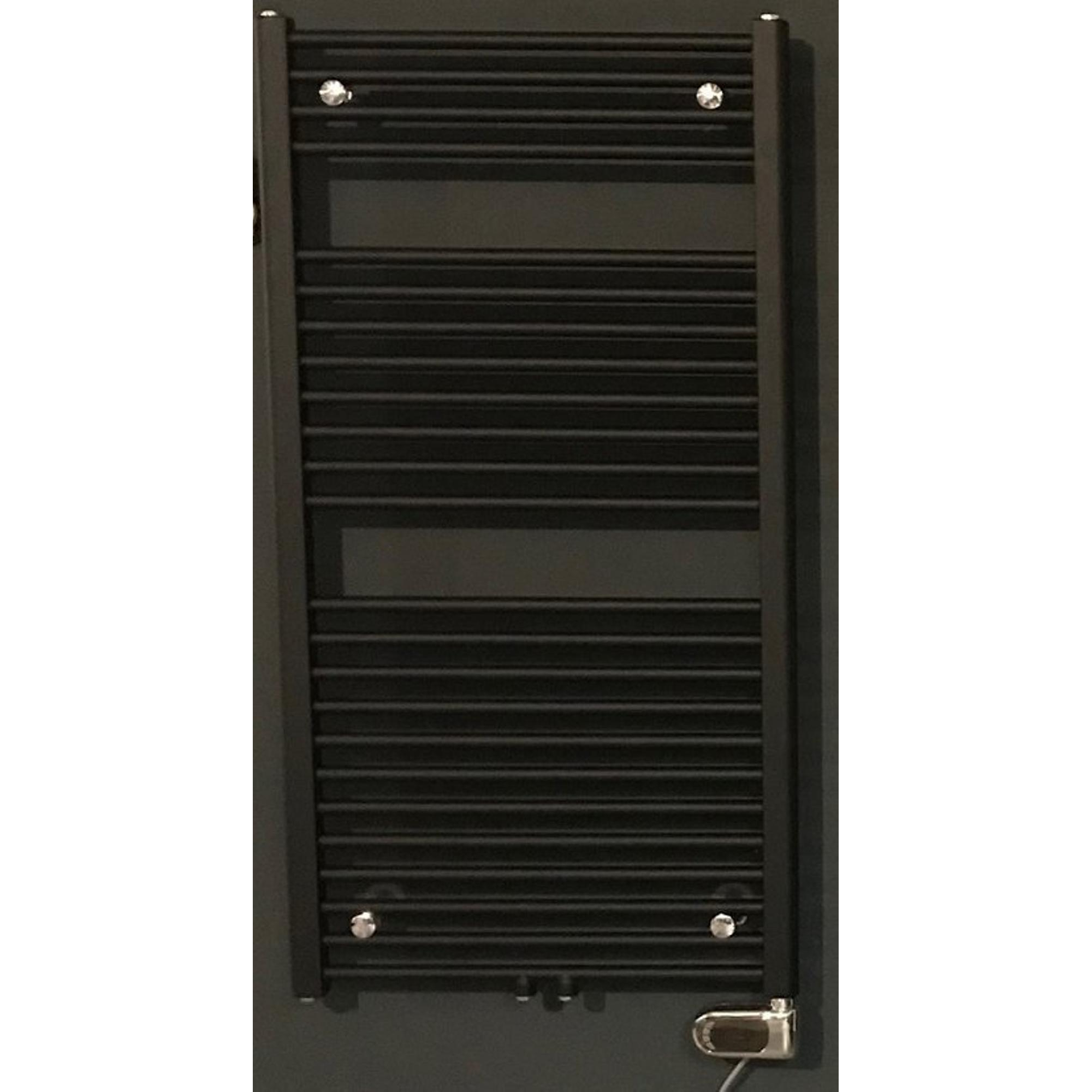 Instamat Robina Radiateur sèche-serviettes électrique 149x60cm avec 4 raccordements ½ incl. consoles murales soft noir