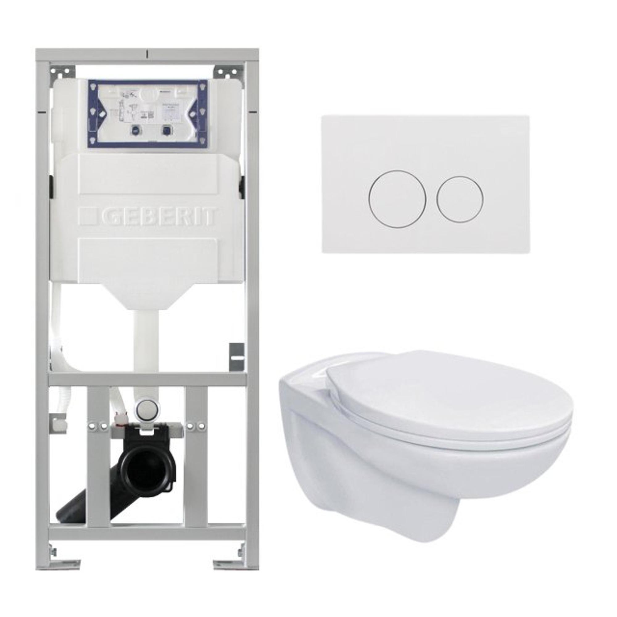 - Ensemble complet avec WC suspendu, abattant WC basic, réservoir encastré et plaque de commande blanche