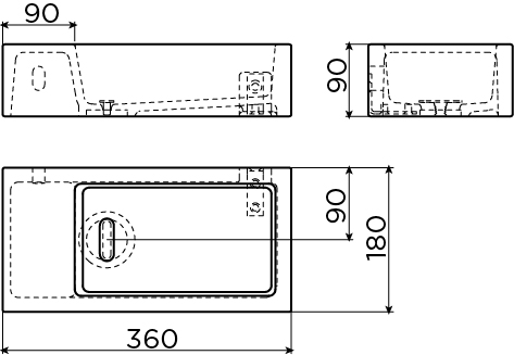 Clou Flush 3 Lave-mains 36x18x9cm sans trou de robinet gauche céramique blanc mat