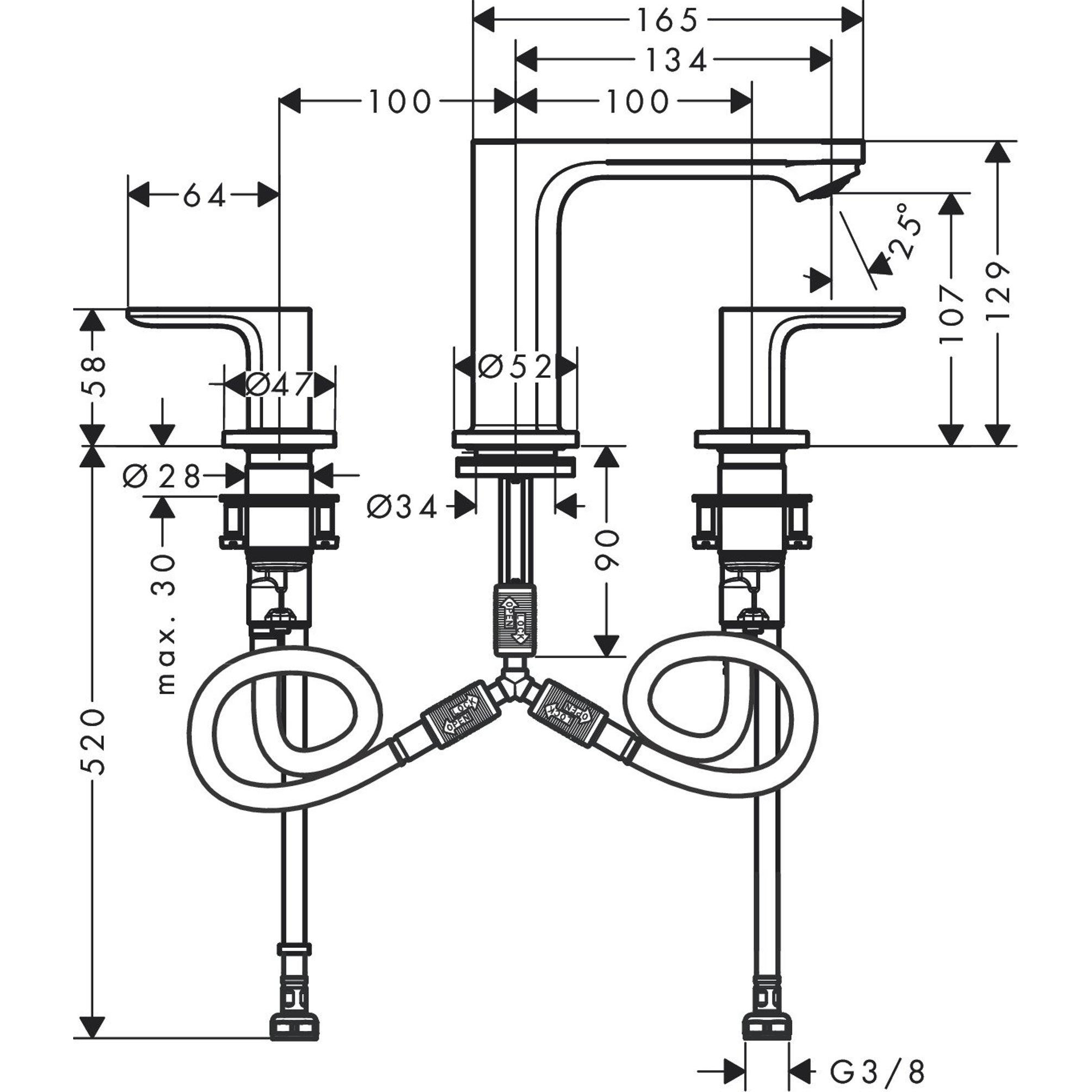 Hansgrohe Rebris s Mitigeur lavabo 110 avec vidage à tirette chrome