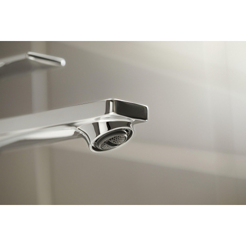 Ce robinet se distingue immédiatement par ses lignes épurées et sa forme moderne. Le chrome intemporel offre un aspect brillant et soigné qui s’adapte sans effort à différents styles de salle de bains. Le design minimaliste en fait un véritable point fort sans dominer. Ainsi, vous donnez à votre salle de bains une mise à niveau subtile mais puissante qui dure des années. De plus, le design ComfortZone 110 offre suffisamment d’espace entre le robinet et le lavabo pour que vous puissiez vous laver les mains confortablement sans être à l’étroit.
