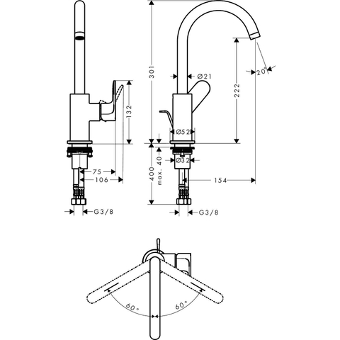 Le bec pivotant avec une amplitude de 120 degrés rend l'utilisation du lavabo particulièrement flexible et confortable. Que vous vous laviez les mains, rinçiez le visage ou remplissiez un seau, vous disposez toujours de suffisamment d'espace et de liberté de mouvement. La garniture de vidage pop-up fournie se commande facilement d'une seule main, ce qui augmente la facilité d'utilisation. De plus, lors de l'installation, vous pouvez régler une température maximale, offrant une sécurité supplémentaire pour vous et votre famille. Les flexibles de raccordement facilitent également une installation rapide et simple, même si vous n'avez pas beaucoup d'expérience en sanitaire.
