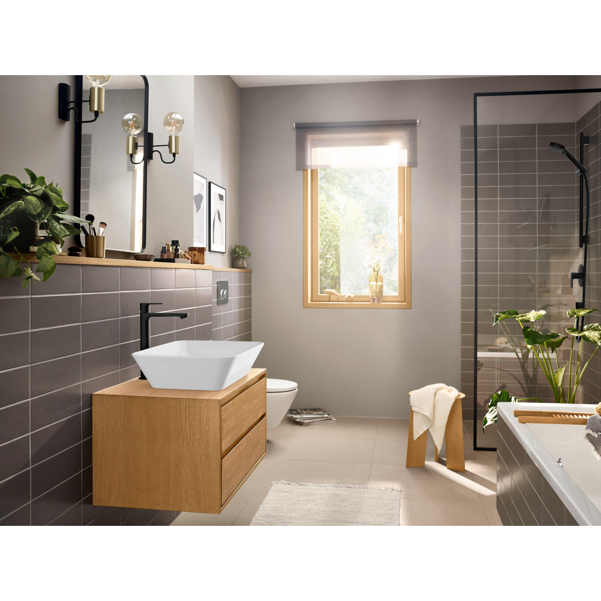 La finition noire mate de ce robinet donne à votre salle de bains une apparence contemporaine et luxueuse. Le design minimaliste aux lignes épurées en fait un véritable point focal qui se combine facilement avec des lavabos modernes et des accessoires. Grâce au bec haut, un effet d'espace se crée, donnant à votre salle de bains une atmosphère ouverte et fraîche. Ce design élégant n'est pas seulement beau à voir, mais aussi pratique : il offre suffisamment d'espace pour utiliser confortablement vos mains et vasques sans éclaboussures. Vous profitez ainsi chaque jour d'une salle de bains qui est non seulement fantastique à regarder, mais aussi agréable à utiliser.