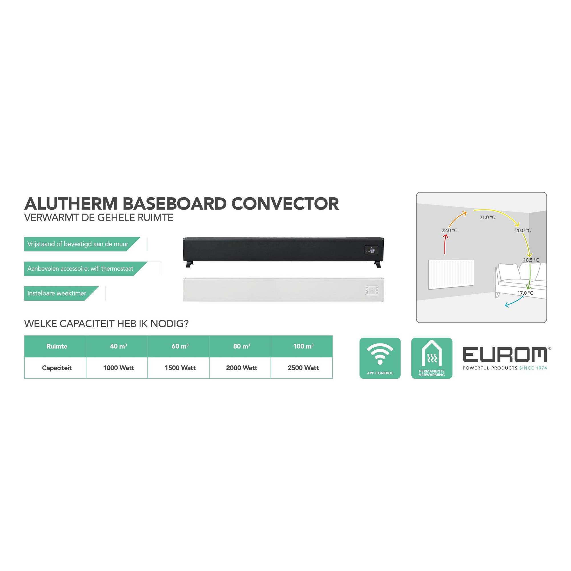 Eurom Alutherm plinthe 1000 WiFi Radiateur convecteur Bas 1000 watts noir