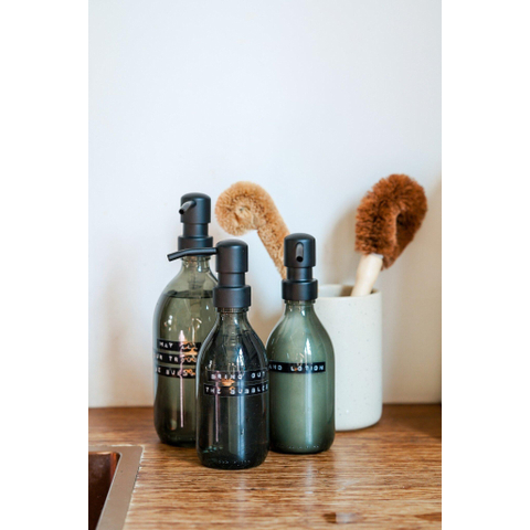 Le petit flacon en verre foncé avec pompe noire est plus qu’un simple distributeur pratique : c’est un accessoire élégant qui donne immédiatement à votre plan de lavabo une allure luxueuse et ordonnée. Le verre a un aspect chic, offre une sensation de solidité et constitue une belle alternative aux flacons de savon en plastique standard. Comme la pompe est rechargeable, vous pouvez réutiliser le flacon encore et encore, ce qui en fait un choix durable et en accord avec un mode de vie responsable. Placez-le sur une jolie coupelle à côté de votre savon pour les mains ou combinez-le avec des accessoires de salle de bains assortis en verre noir ou couleur ambre pour un ensemble harmonieux. Vous créez ainsi, avec un petit ajout, un grand effet dans votre salle de bains ou vos toilettes.