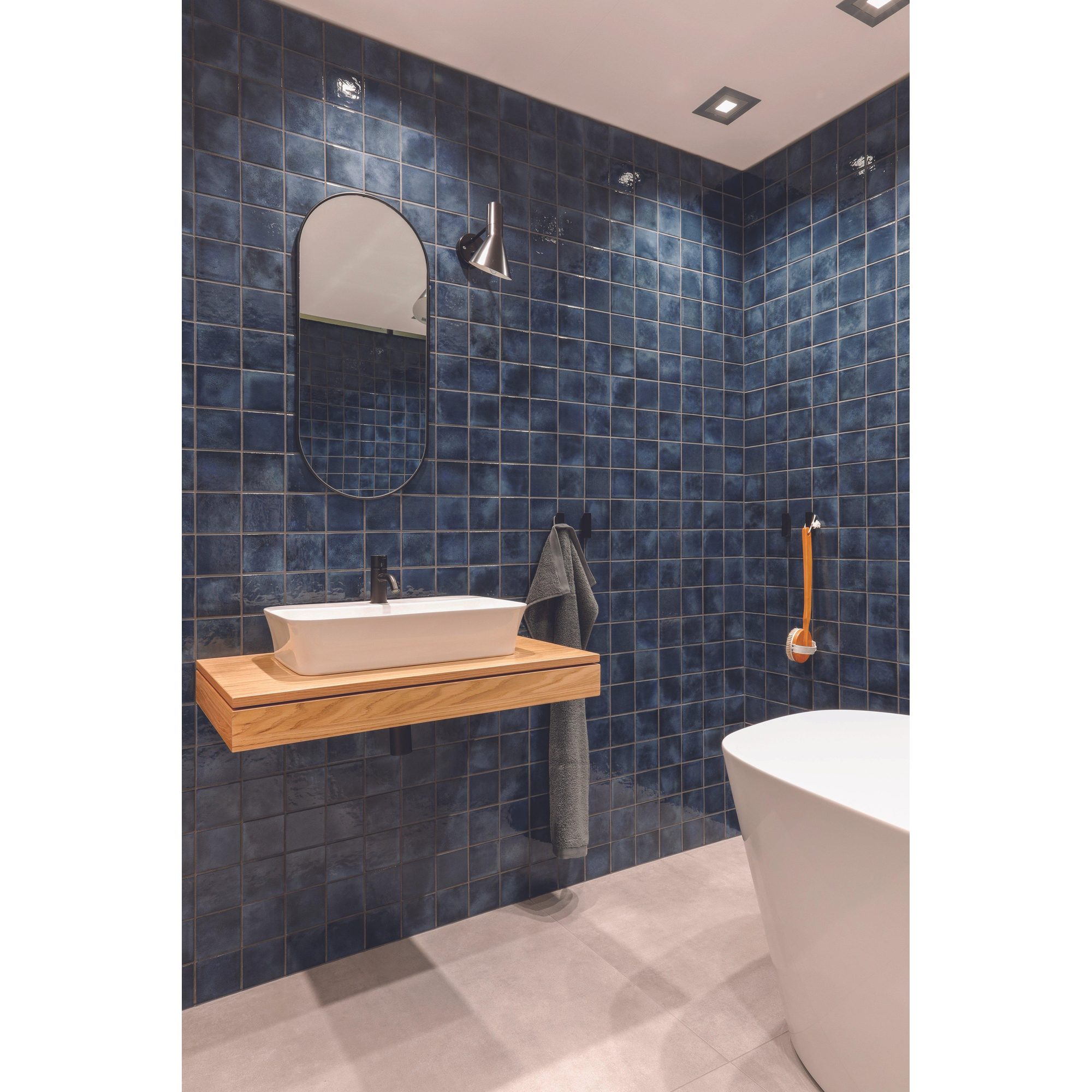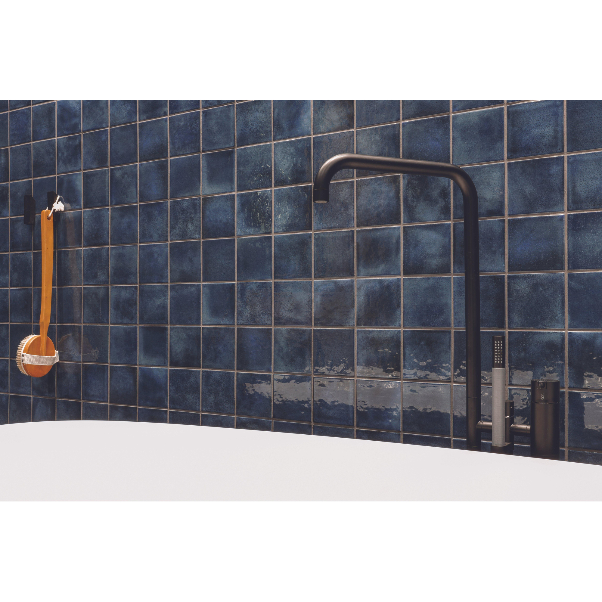La riche couleur indigo avec finition brillante donne immédiatement à votre espace une apparence exclusive. La lumière se reflète subtilement sur les surfaces en porcelaine, ce qui donne au mur un aspect vivant sans devenir agité. Surtout en combinaison avec un éclairage chaleureux ou la lumière du jour, la couleur gagne en profondeur et en nuances. Vous pouvez magnifiquement combiner cette teinte avec des matériaux neutres tels que la robinetterie et les sanitaires blancs, des carreaux de sol gris clair ou des accents en bois naturel. Si vous souhaitez davantage de contraste dans votre intérieur, combinez l’indigo plutôt avec des robinets noirs ou des détails dorés. Vous créez ainsi facilement un style personnel, du chic moderne aux ambiances méditerranéennes ou même bohèmes.