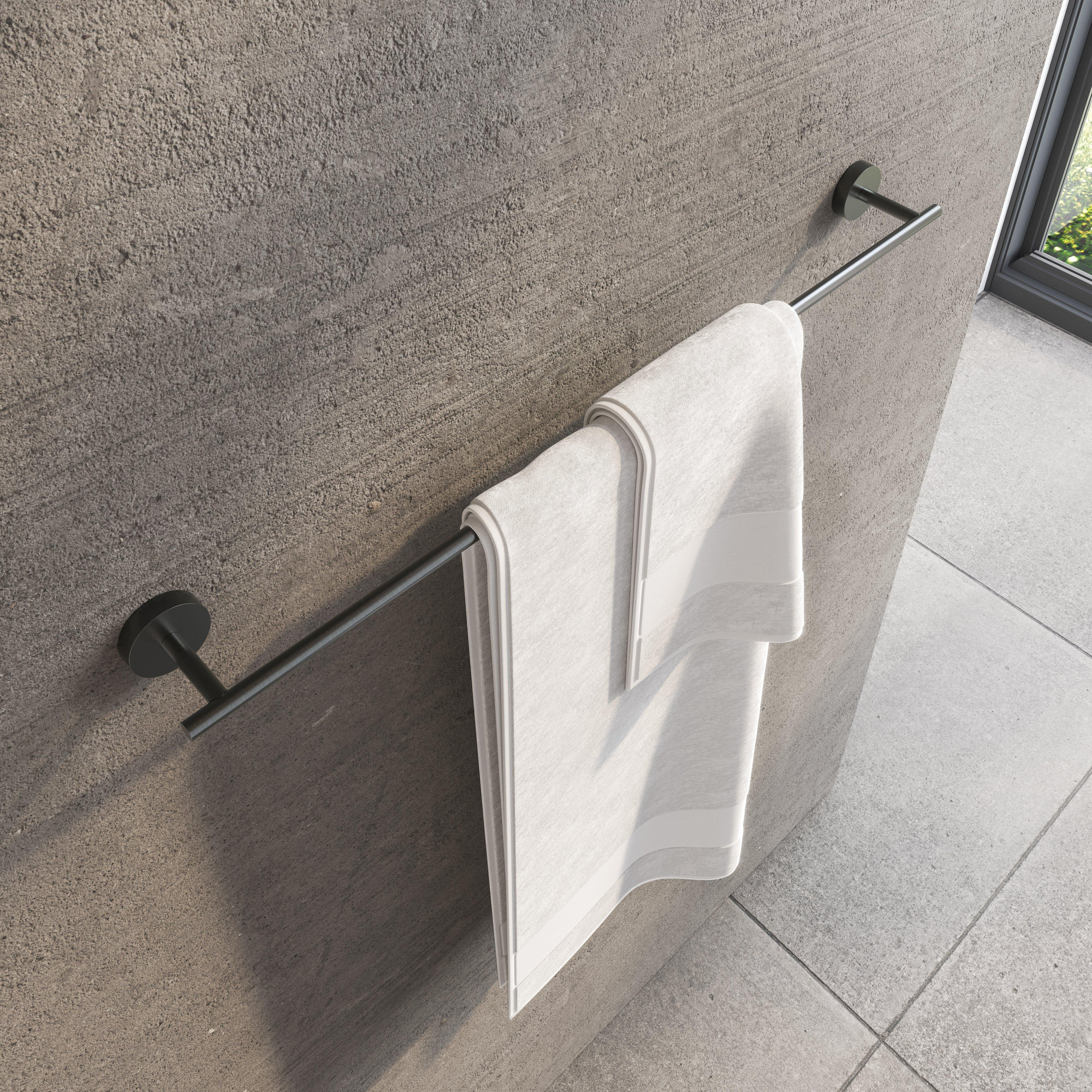 La finition mate gunmetal brossé PVD donne au porte-serviettes une apparence contemporaine et robuste qui s’intègre parfaitement dans les salles de bains modernes. Le design minimaliste aux lignes épurées correspond parfaitement aux tendances actuelles en matière d’aménagement de salle de bains. Cet accessoire n’est pas seulement un élément fonctionnel, mais aussi une déclaration de style qui confère à votre salle de bains une apparence luxueuse et contemporaine. Vous combinez ainsi sans effort style et facilité d’utilisation.