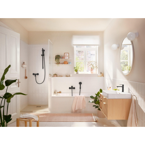 Ce mitigeur de douche se distingue immédiatement par sa finition noire mate élégante, qui crée un contraste saisissant avec la plupart des carreaux et accessoires de salle de bains. Le design fin et arrondi dégage une simplicité moderne et donne à votre salle de bains un aspect frais et contemporain. Grâce à sa forme intemporelle, le mitigeur reste un élément de style pendant des années, quelles que soient les tendances changeantes. Vous investissez ainsi non seulement dans la fonctionnalité, mais aussi dans un design qui reflète parfaitement votre style personnel.