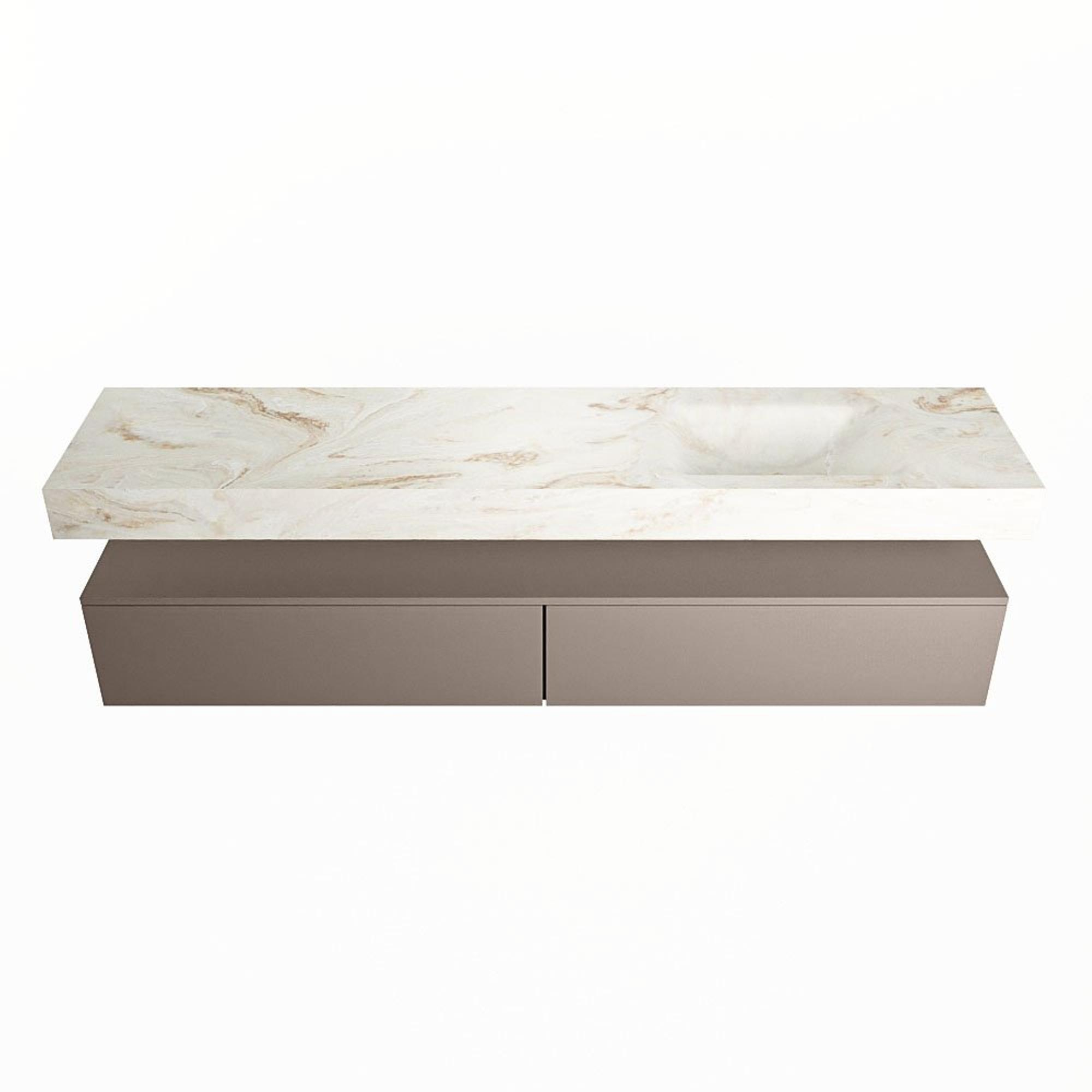 MONDIAZ ALAN - DLUX Ensemble meuble de salle de bains - 200cm - meuble bas - Smoke - 2 tiroirs - lavabo suspendu - cuve à droite - 0 trous de robinet - Frappe
