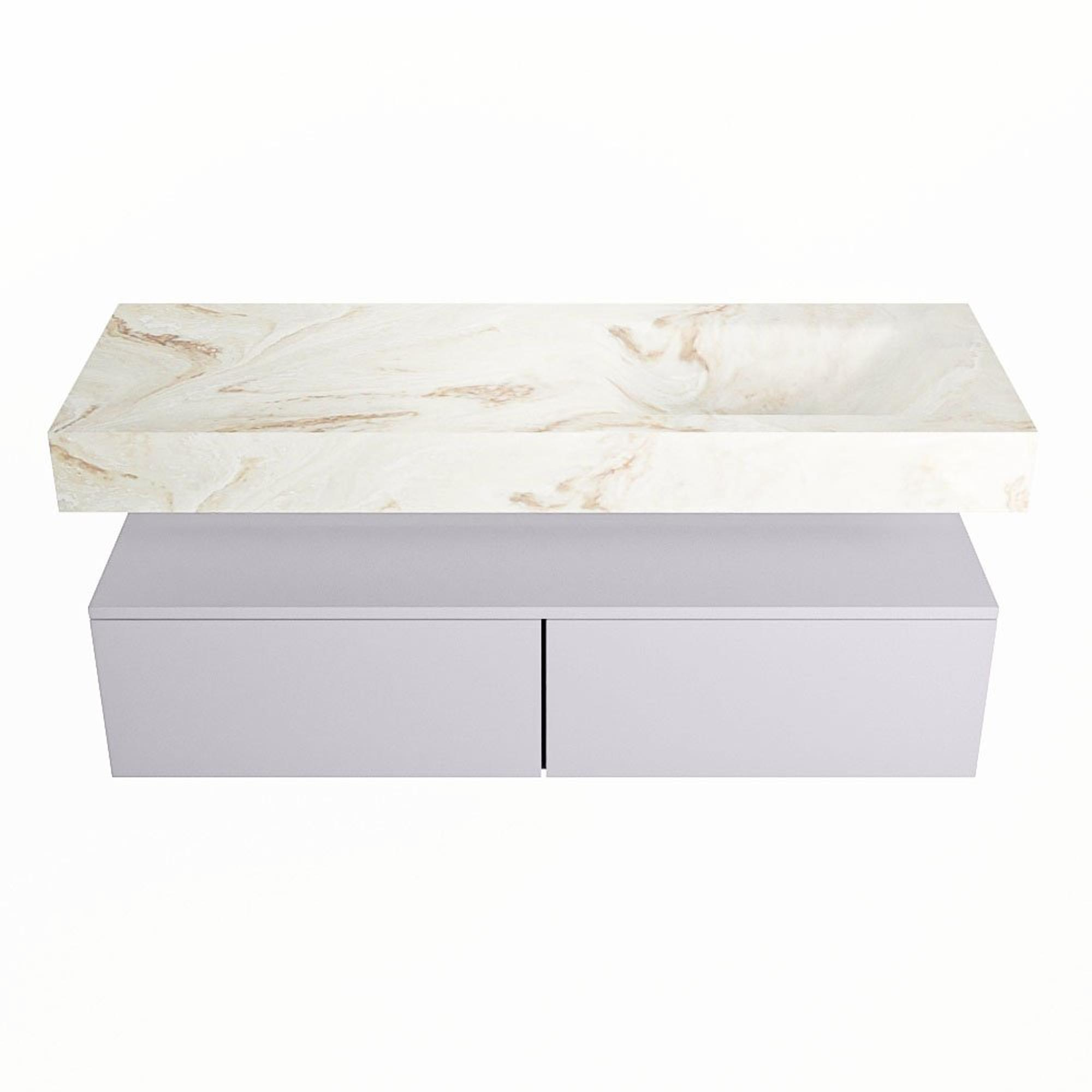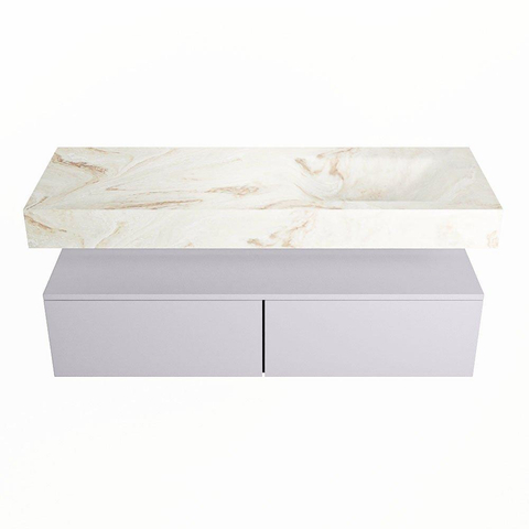 Mondiaz ALAN-DLUX Ensemble de meuble - 130cm - meuble Cale mat - 2 tiroirs - Lavabo Cloud Frappe suspendu - vasque Droite - 1 trou de robinet