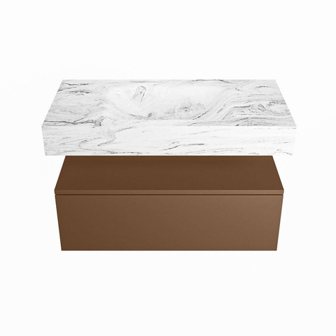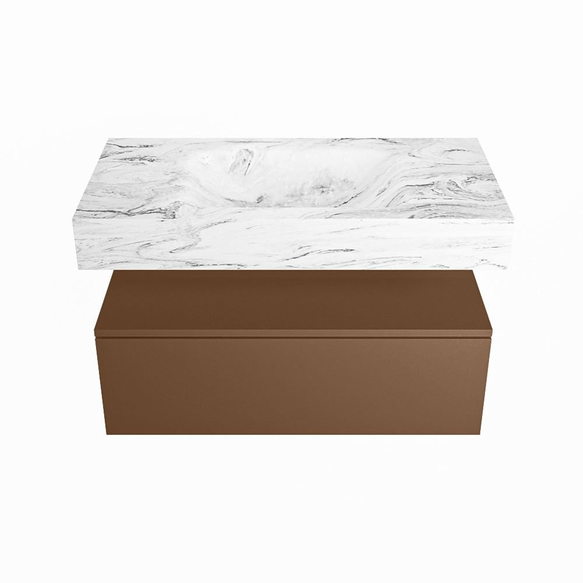MONDIAZ ALAN - DLUX Ensemble meuble de salle de bains - 90cm - meuble bas - Rust - 1 tiroir - lavabo suspendu - vasque au centre - 1 trou de robinet - Glace