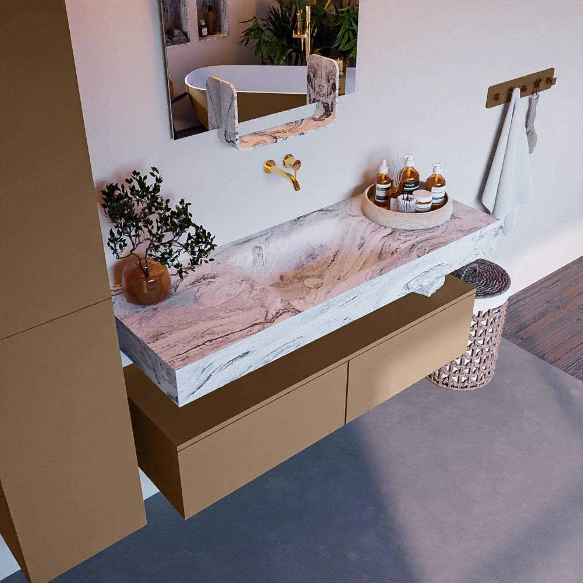 MONDIAZ ALAN - DLUX Ensemble de meuble de salle de bains - 130cm - meuble bas - Oro - 2 tiroirs - lavabo suspendu - vasque centrale - 0 trou de robinet - Glace