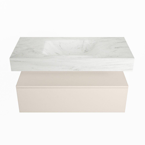 MONDIAZ ALAN - DLUX Ensemble meuble de salle de bains - 100cm - meuble bas - Linen - 1 tiroir - lavabo suspendu - vasque au centre - 1 trou de robinet - Opalo