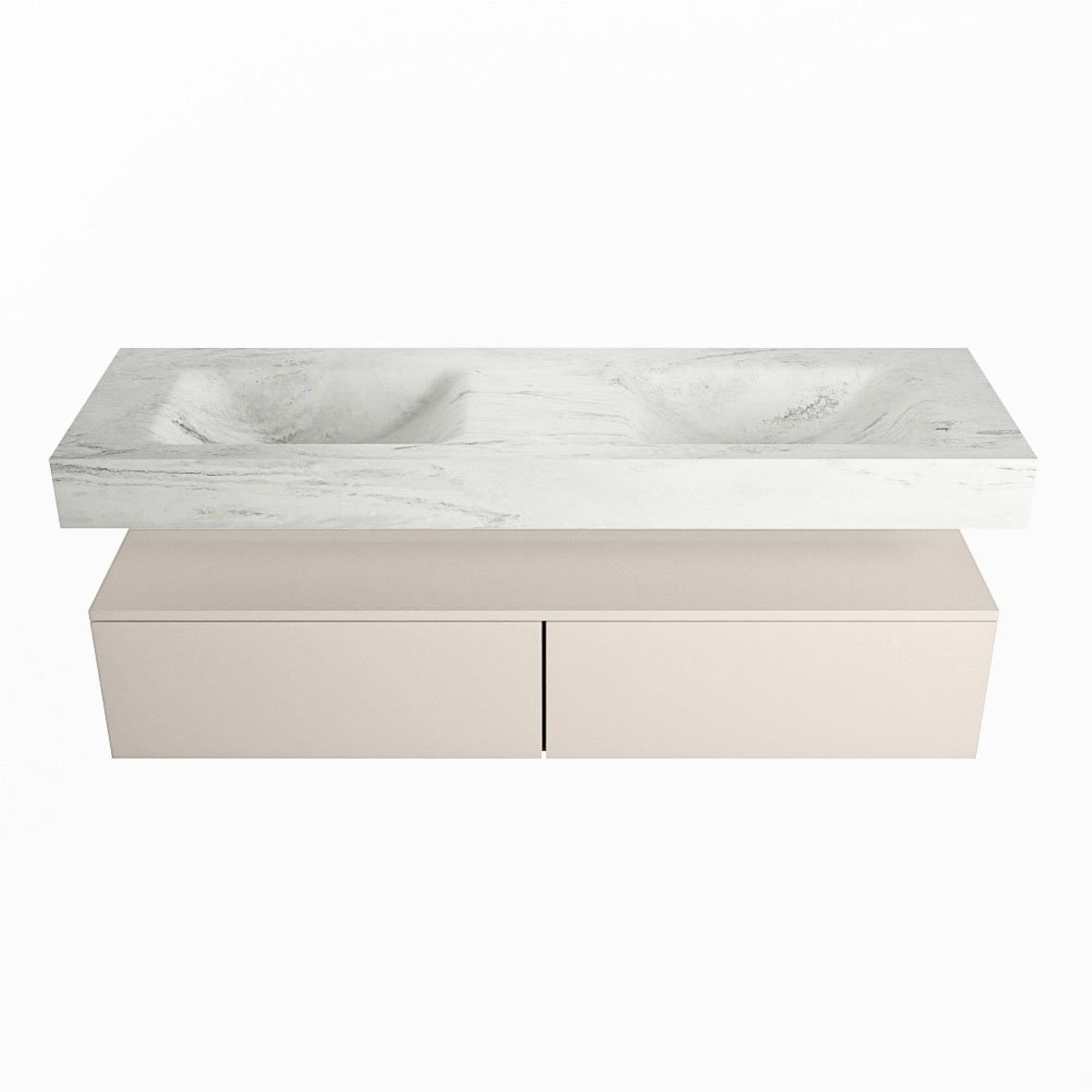 MONDIAZ ALAN - DLUX Ensemble meuble de salle de bains - 150cm - sous-meuble - Linen - 2 tiroirs - lavabo suspendu - 2 cuves - 2 trous de robinet - Opalo