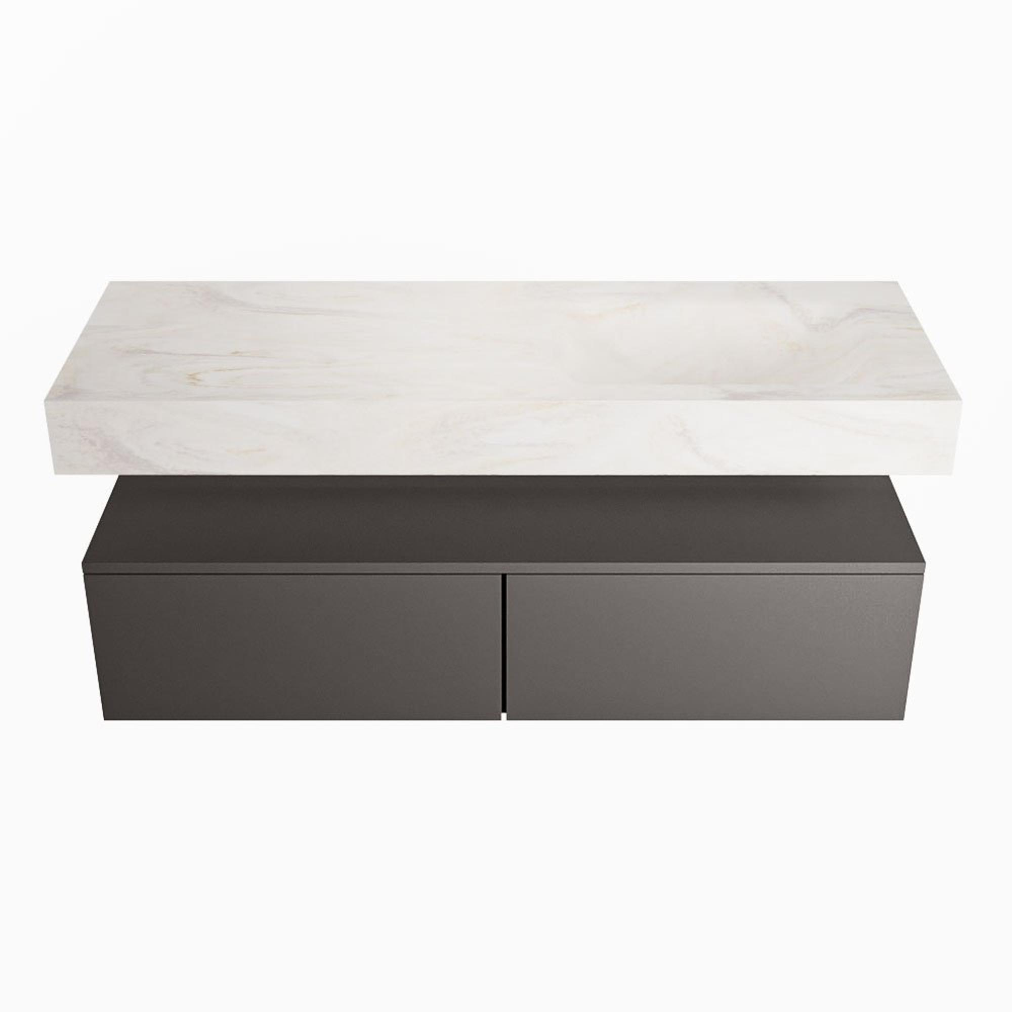 MONDIAZ ALAN - DLUX Ensemble meuble de salle de bains - 130cm - meuble bas - Dark grey - 2 tiroirs - lavabo suspendu - cuve à droite - 0 trous de robinet - Ostra