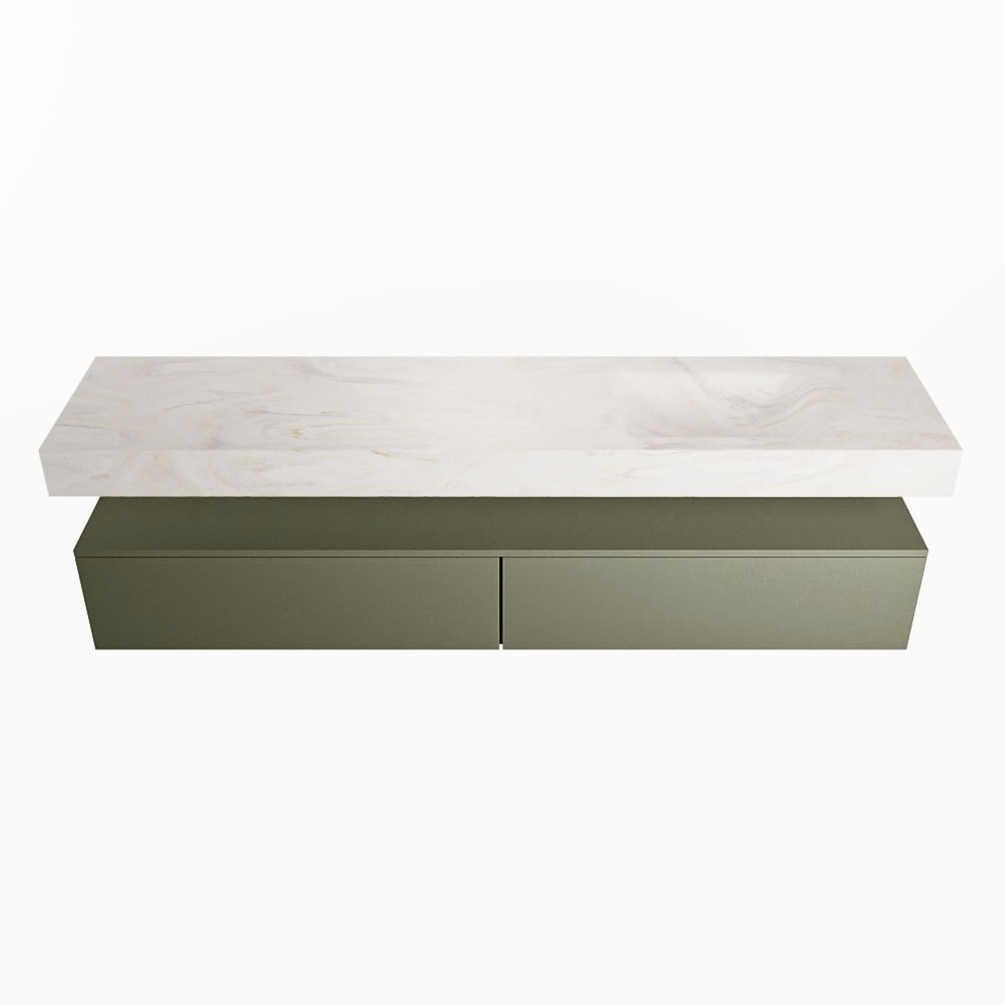MONDIAZ ALAN - DLUX Ensemble meuble de salle de bains - 200cm - meuble bas - Army - 2 tiroirs - lavabo suspendu - vasque à droite - 1 trou de robinet - Ostra