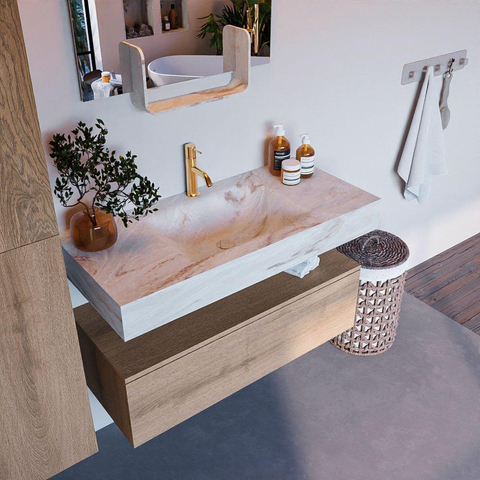 Mondiaz ALAN-DLUX Ensemble de meuble - 100cm - meuble Washed Oak mat - 1 tiroir - Lavabo Cloud Frappe suspendu - vasque Centre - 1 trou de robinet