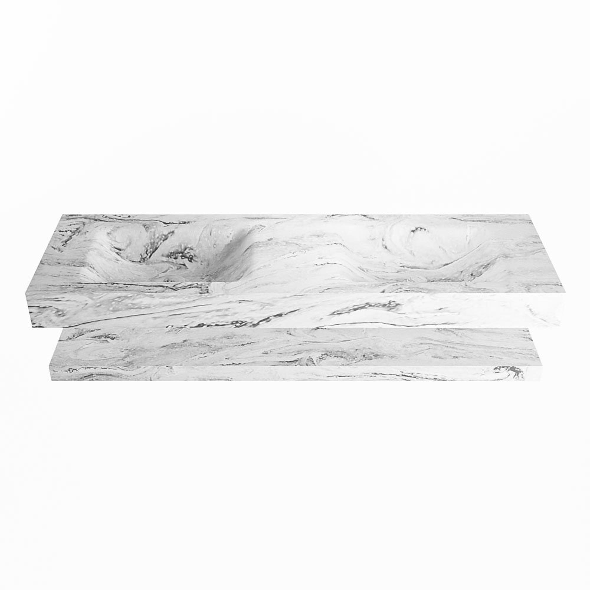 Mondiaz ALAN-DLUX Ensemble de meuble - 150cm - meuble Glace mat - 0 tiroirs - Lavabo Cloud Glace suspendu - vasque Gauche et droite - 0 trous de robinet