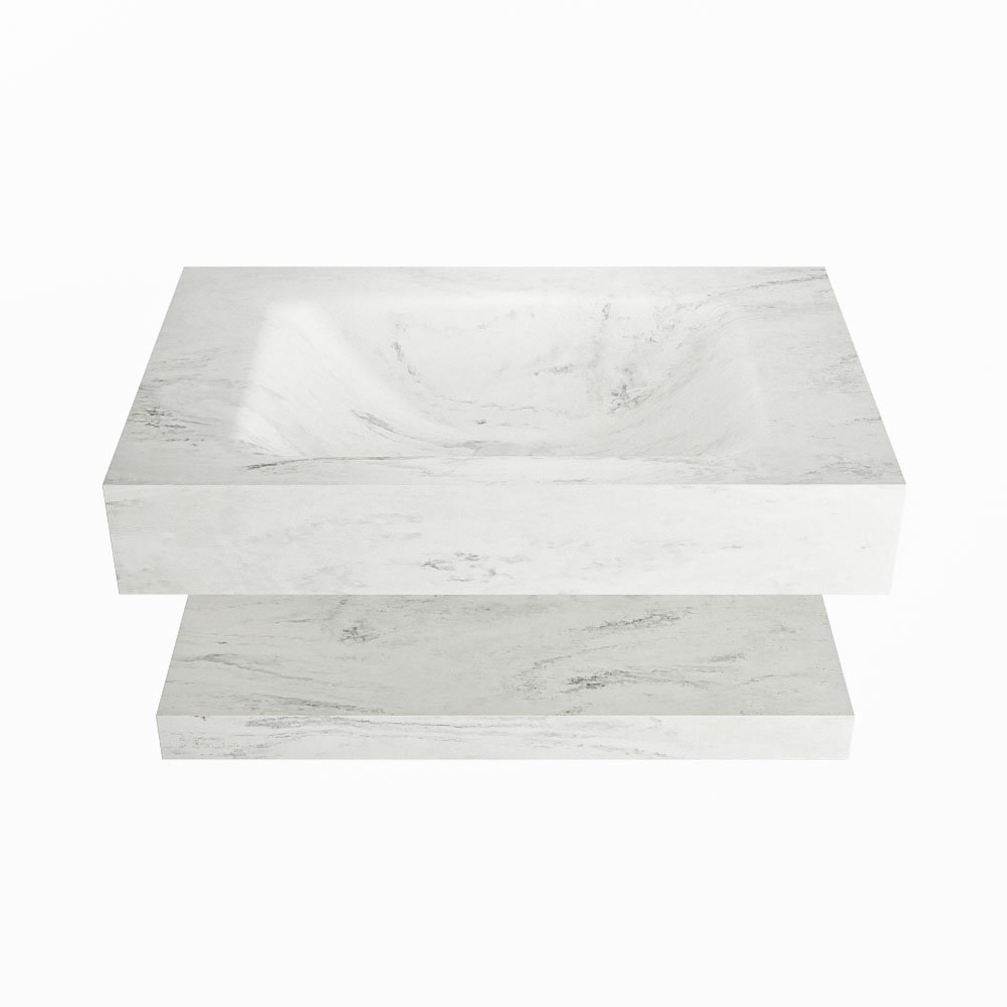 Mondiaz ALAN-DLUX Ensemble de meuble - 70cm - meuble Opalo mat - 0 tiroirs - Lavabo Cloud Opalo suspendu - vasque Centre - 1 trou de robinet