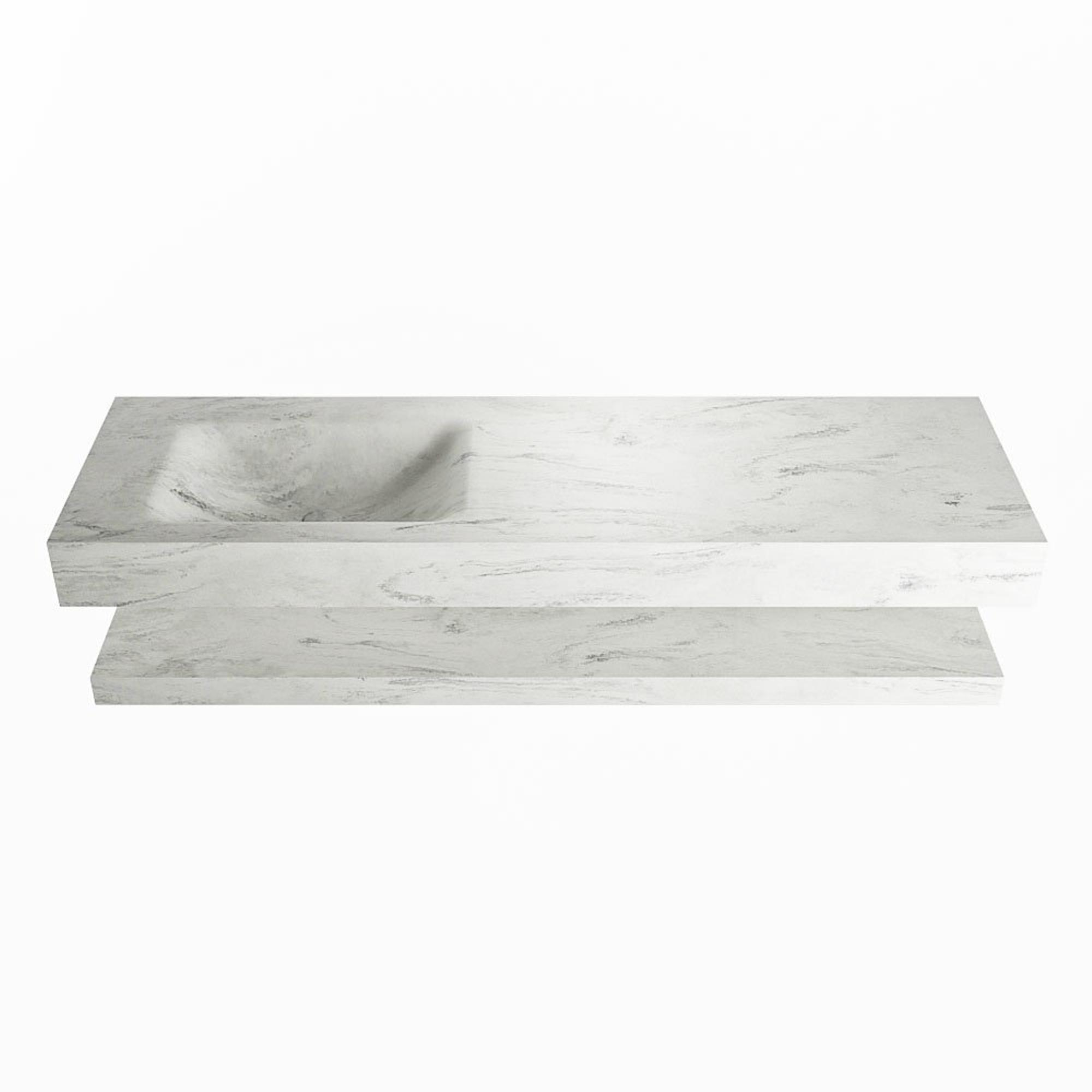 Mondiaz ALAN-DLUX Ensemble de meuble - 150cm - meuble Opalo mat - 0 tiroirs - Lavabo Cloud Opalo suspendu - vasque Gauche - 0 trous de robinet