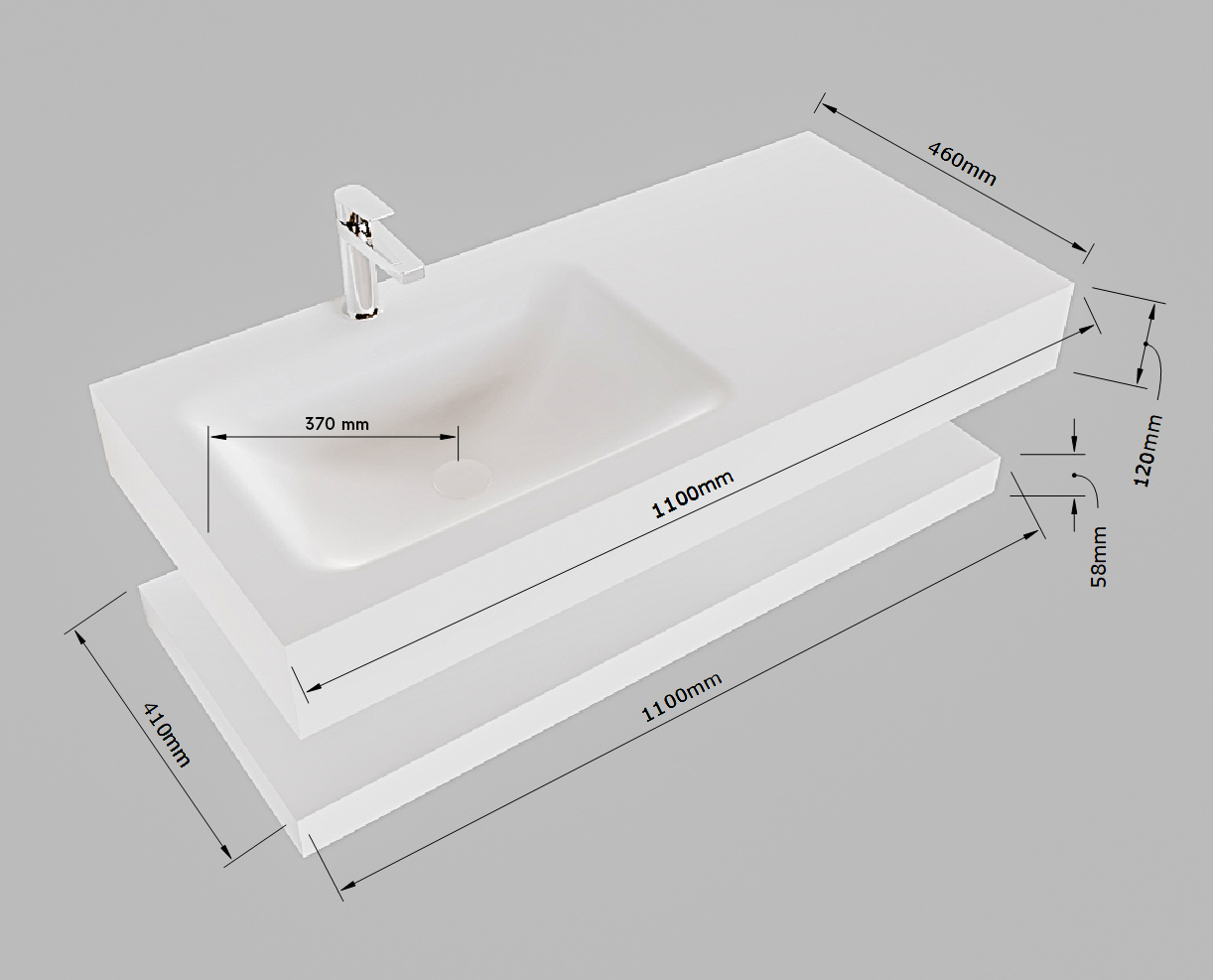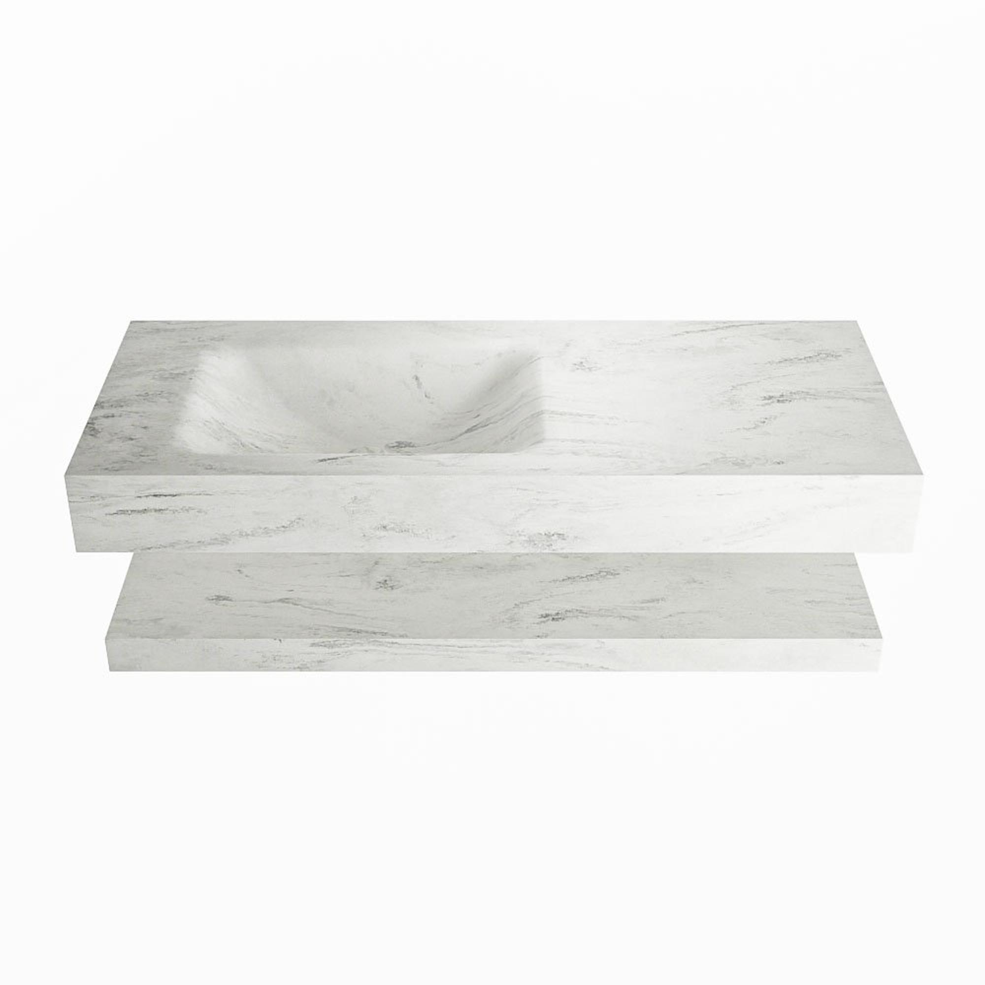 Mondiaz ALAN-DLUX Ensemble de meuble - 110cm - meuble Opalo mat - 0 tiroirs - Lavabo Cloud Opalo suspendu - vasque Gauche - 1 trou de robinet