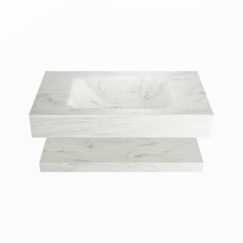 Mondiaz ALAN-DLUX Ensemble de meuble - 80cm - meuble Opalo mat - 0 tiroirs - Lavabo Cloud Opalo suspendu - vasque Centre - 1 trou de robinet