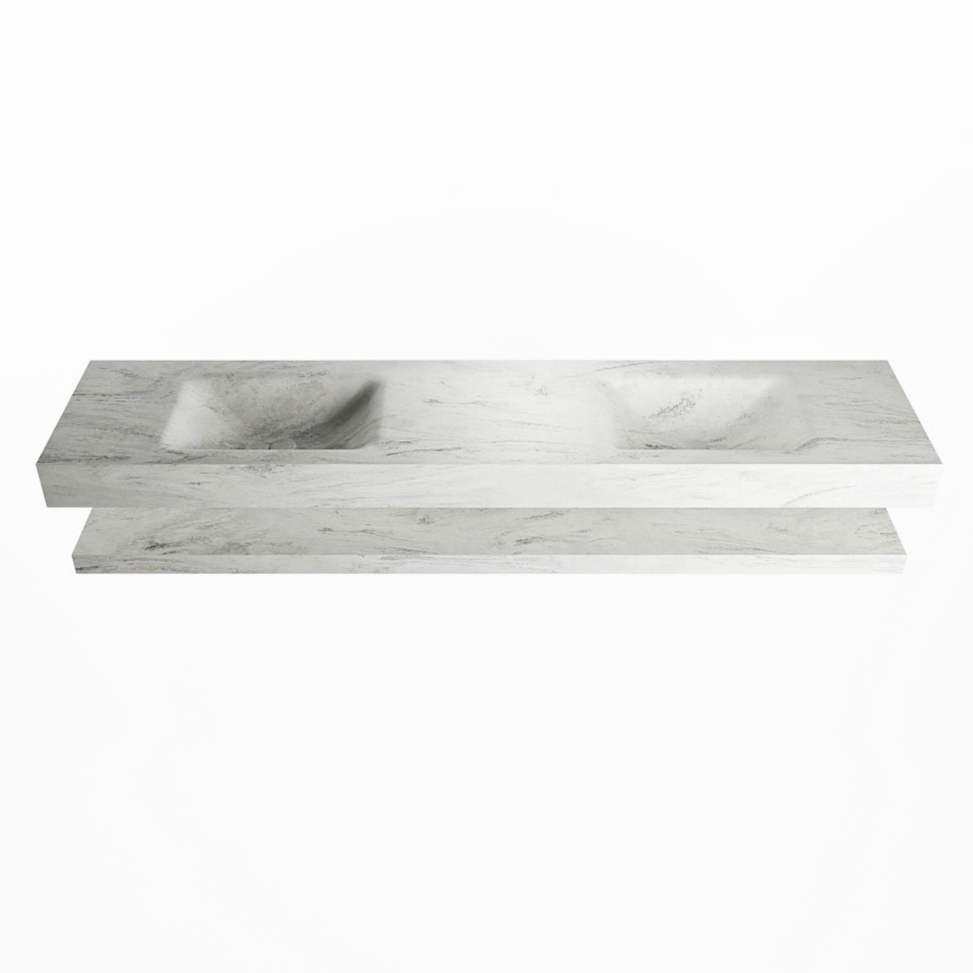 Mondiaz ALAN-DLUX Ensemble de meuble - 200cm - meuble Opalo mat - 0 tiroirs - Lavabo Cloud Opalo suspendu - vasque Gauche et droite - 0 trous de robinet