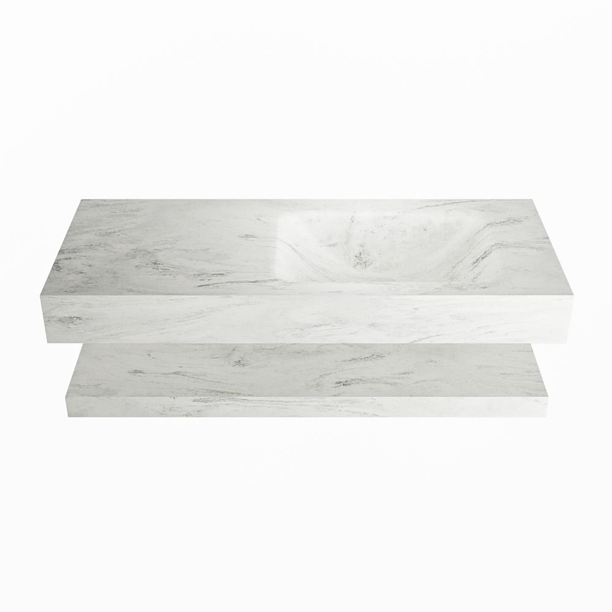 Mondiaz ALAN-DLUX Ensemble de meuble - 110cm - meuble Opalo mat - 0 tiroirs - Lavabo Cloud Opalo suspendu - vasque Droite - 0 trous de robinet