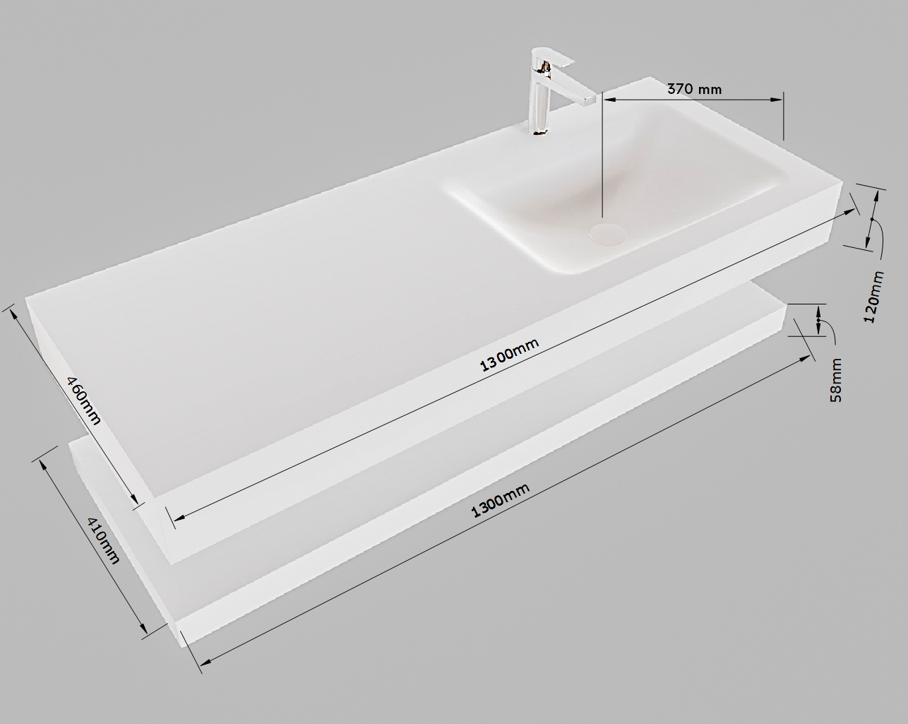 Mondiaz ALAN-DLUX Ensemble de meuble - 130cm - meuble Frappe mat - 0 tiroirs - Lavabo Cloud Frappe suspendu - vasque Droite - 0 trous de robinet