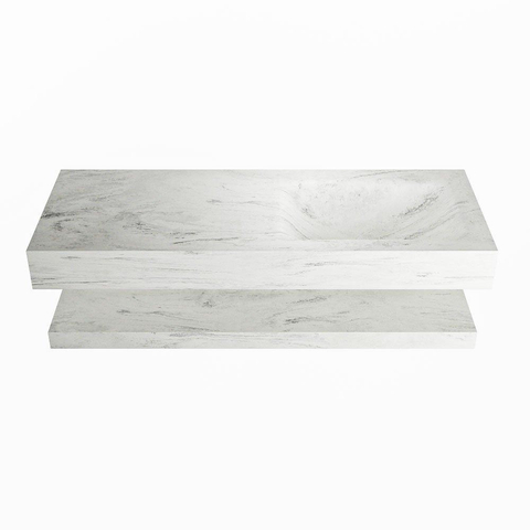 Mondiaz ALAN-DLUX Ensemble de meuble - 120cm - meuble Opalo mat - 0 tiroirs - Lavabo Cloud Opalo suspendu - vasque Droite - 0 trous de robinet